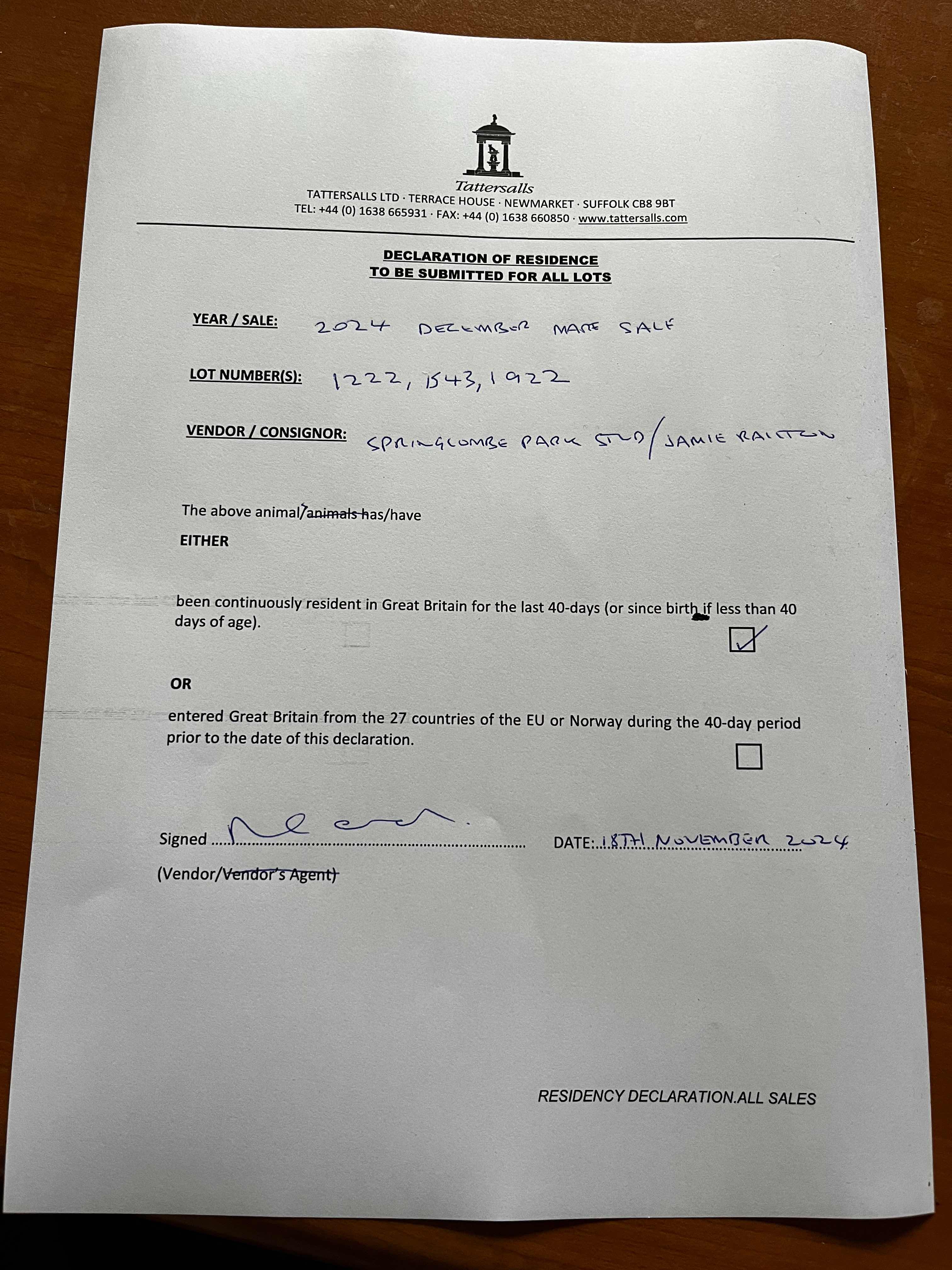 Consignor: Jamie Railton (Agent)