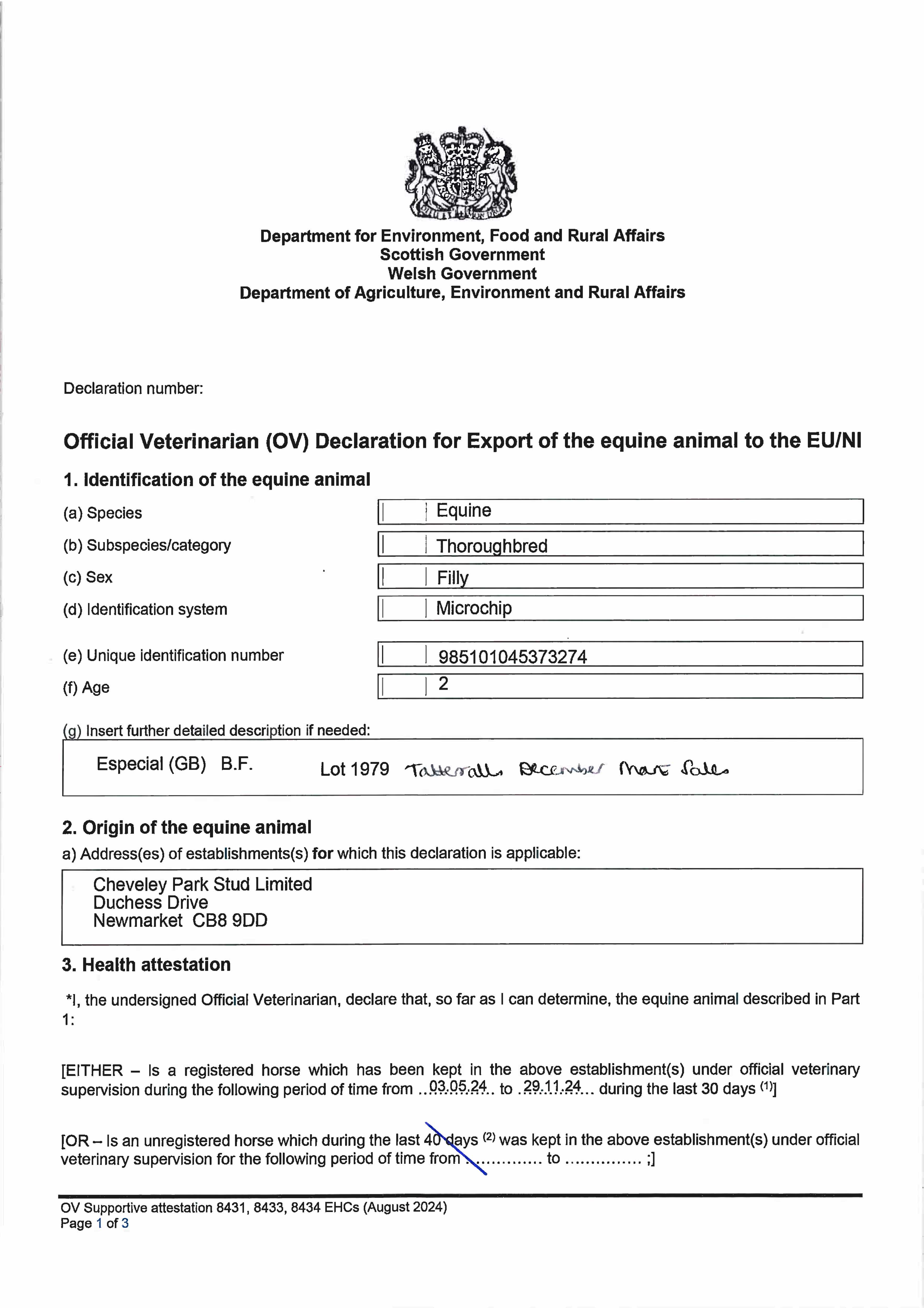 December Foal Sale 2024 lot 562 F. by Ulysses (IRE) 2024, Cheveley Park Stud Ltd.=>Tradewinds 24,000 gns