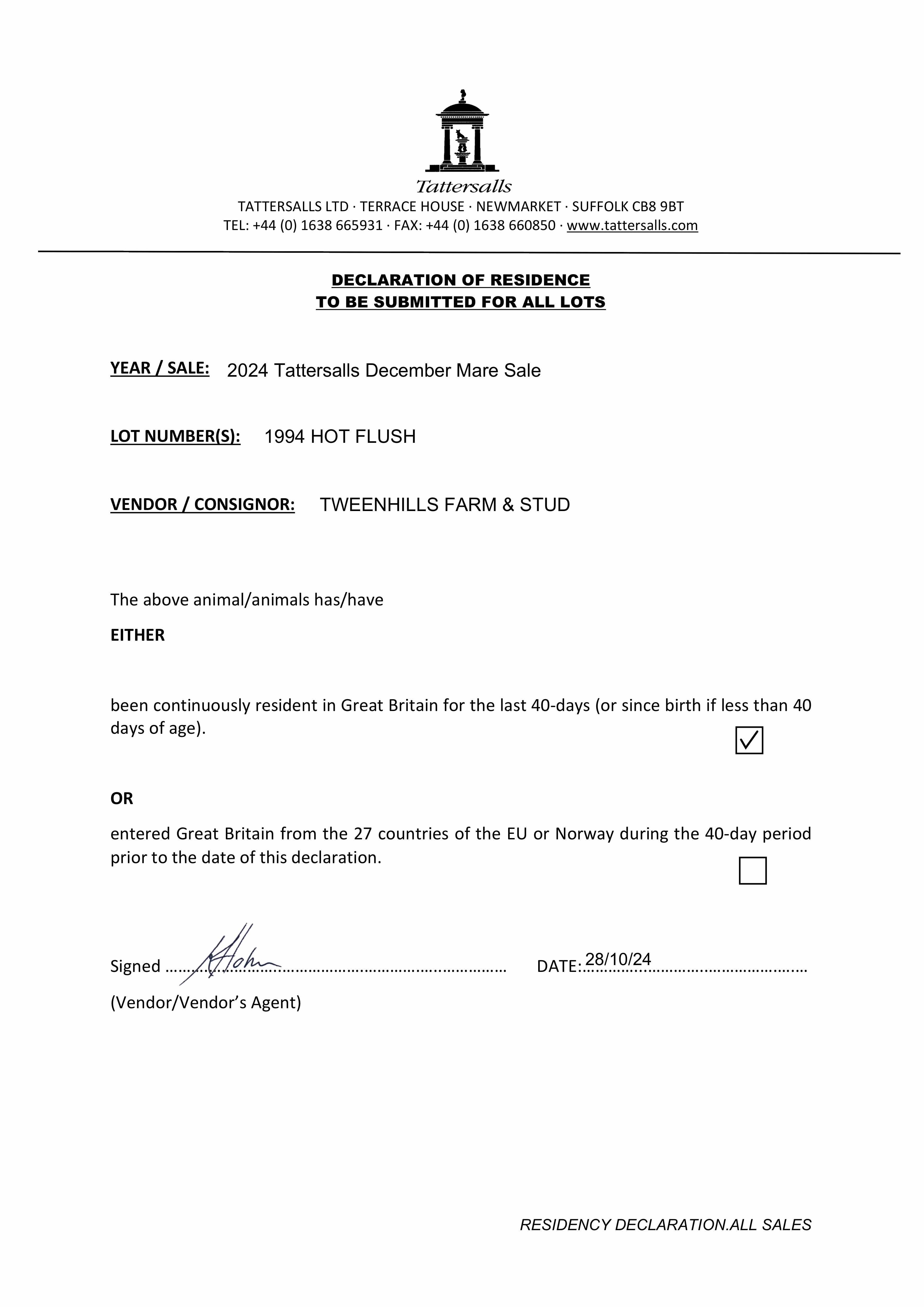 Consignor: Tweenhills Farm & Stud