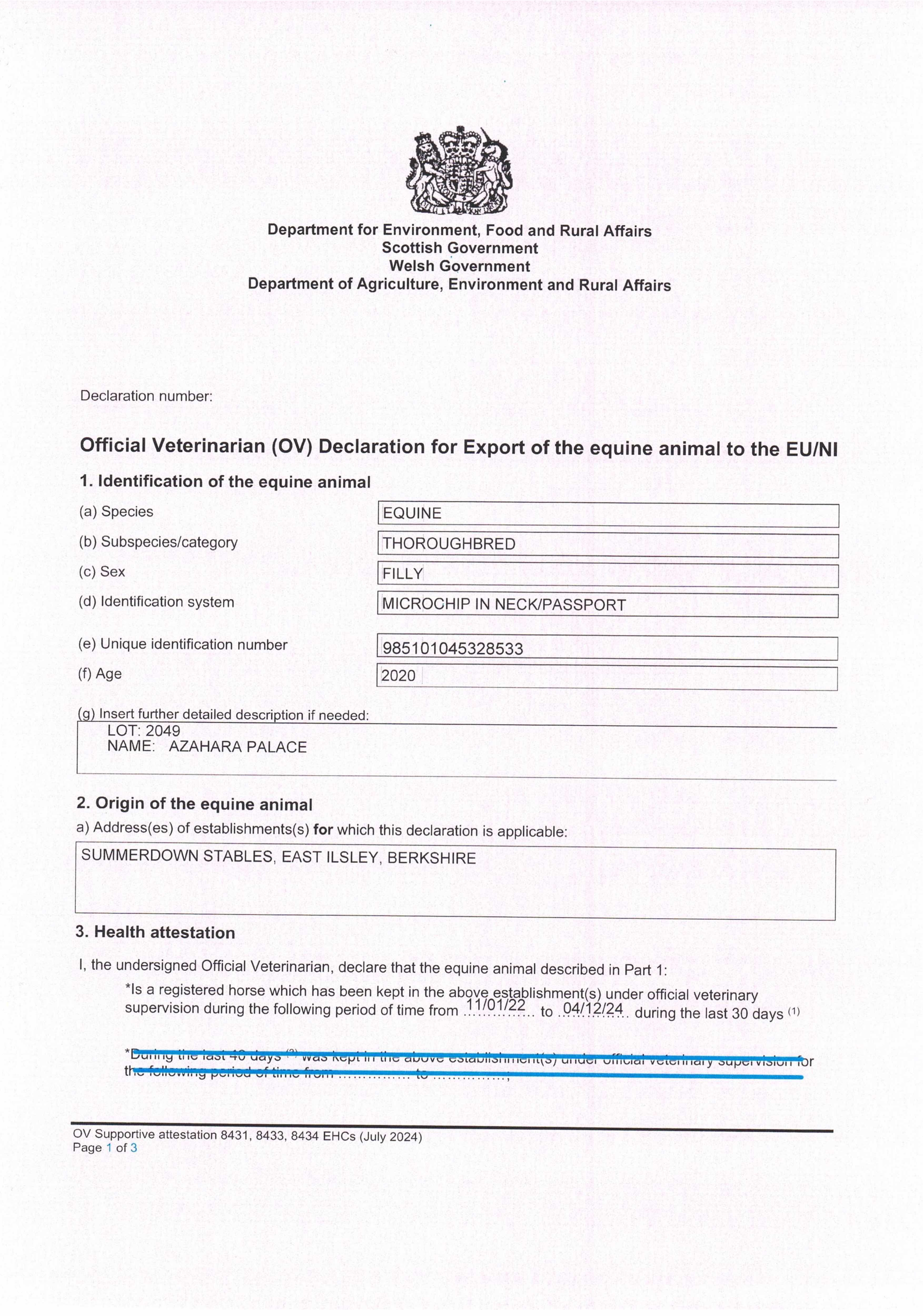 October Yearling Sale, Book 3 2024 lot 1388 F. by Zoustar (AUS) 2023, Norris Bloodstock=>SBZ Equine 10,000 gns