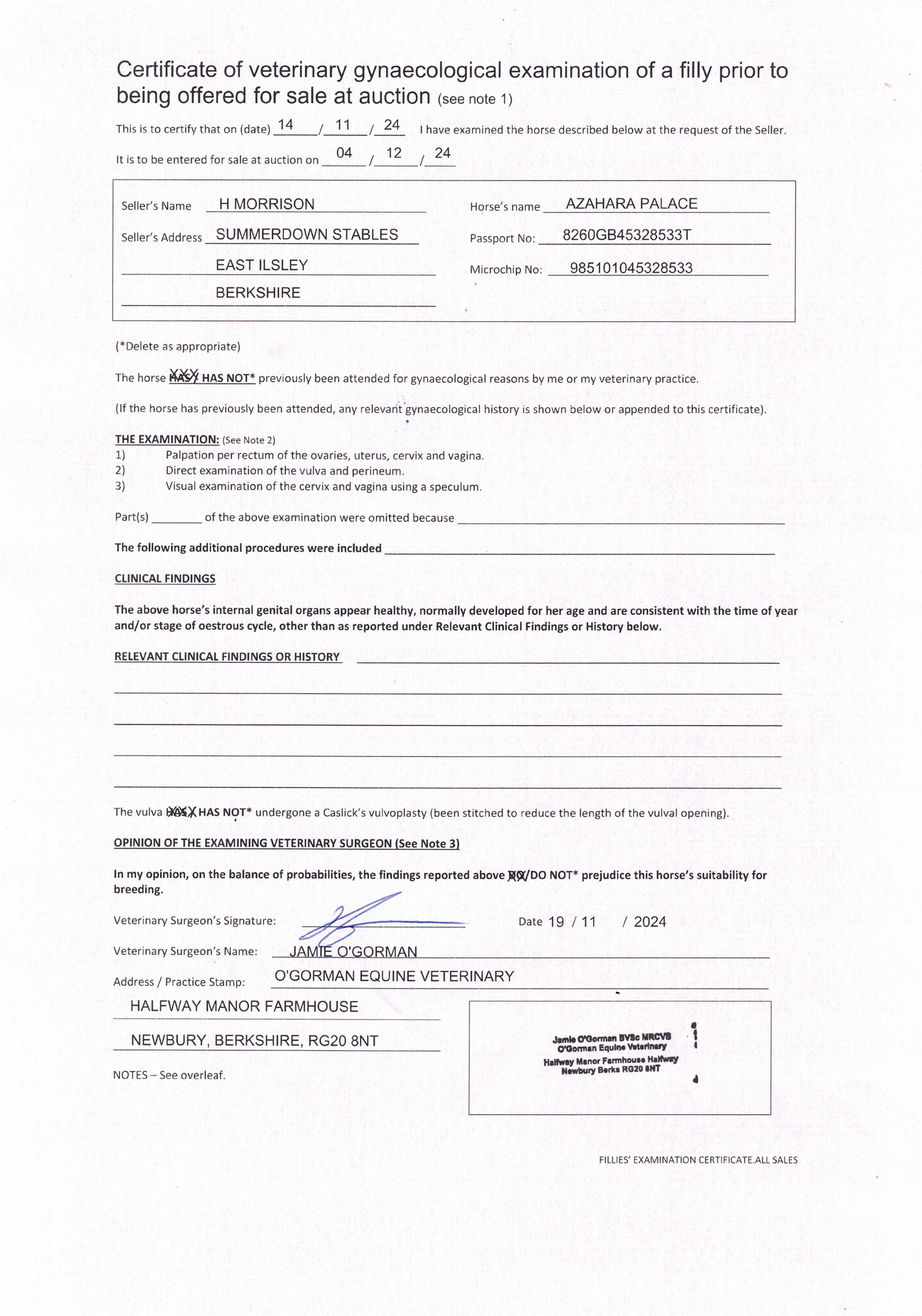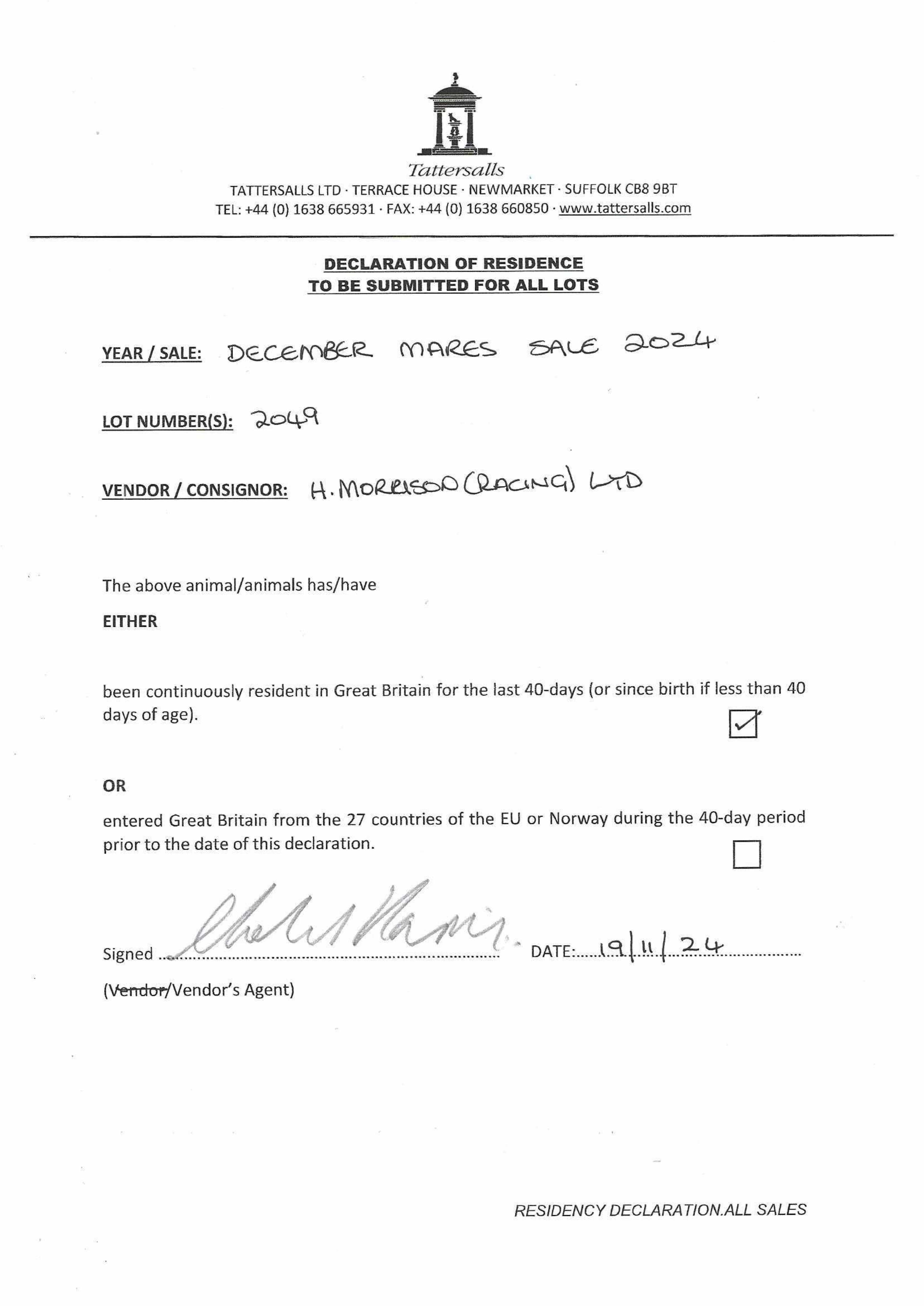 Consignor: Summerdown Stables (H. Morrison)