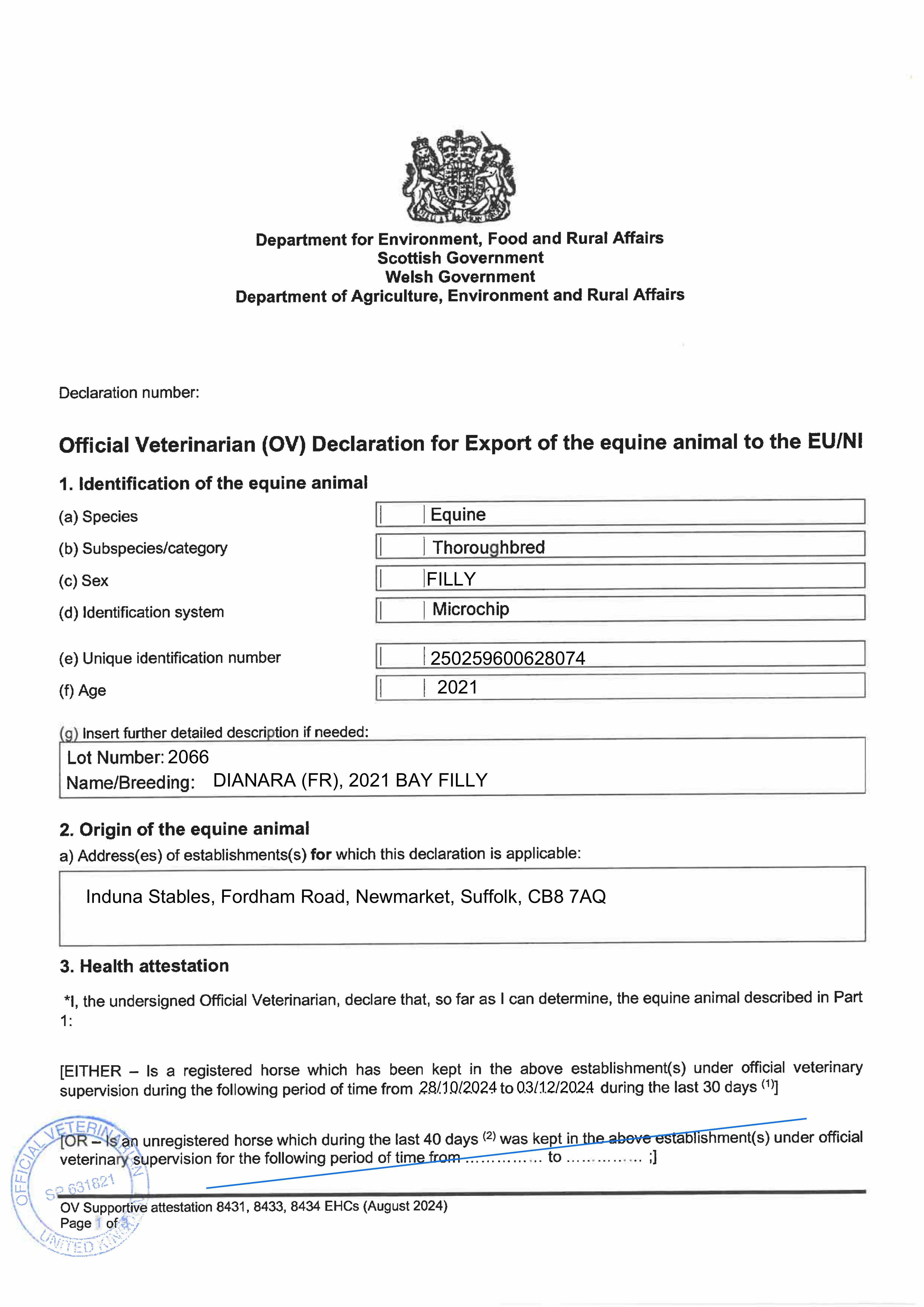 July Sale 2025 lot 214 Dianarina (FR) (F.), Shinco Racing Ltd. (D. Menuisier)=>Lot Not Sold 19,000 gns