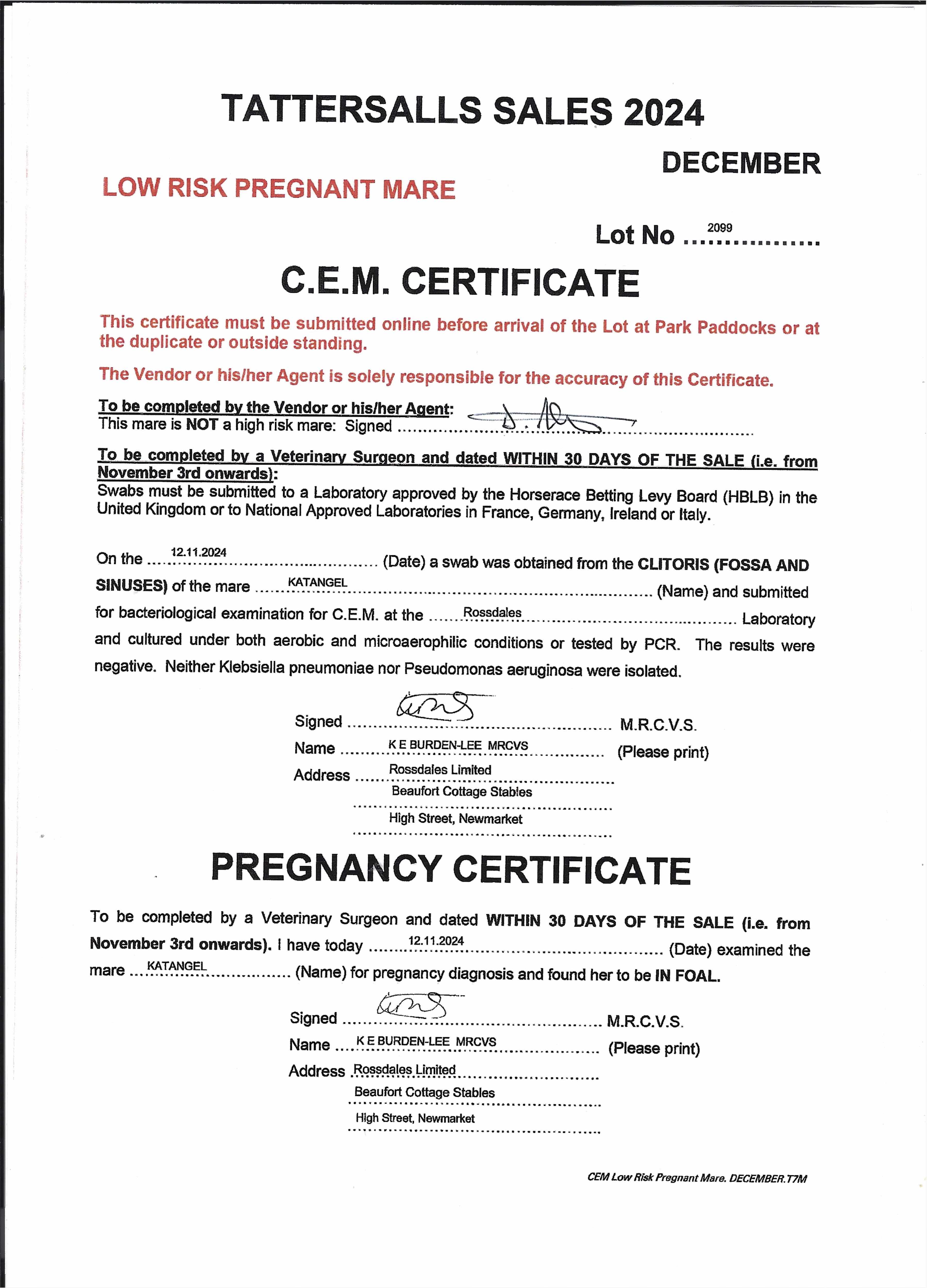 December Foal Sale 2024 lot 490 F. by Nathaniel (IRE) 2024, RMM Bloodstock=>Julian Gaze Bloodstock 35,000 gns