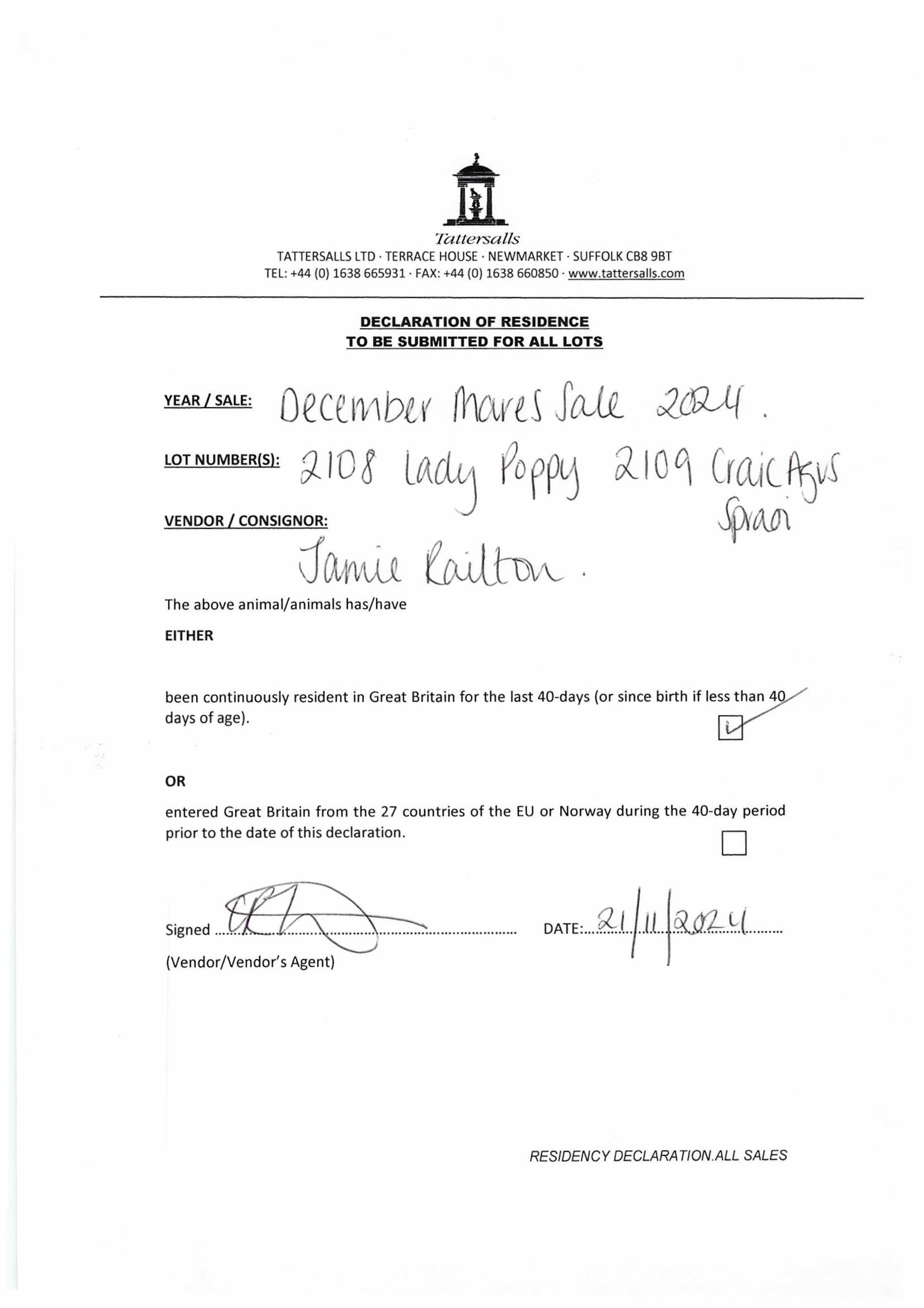 Consignor: Jamie Railton (Agent)