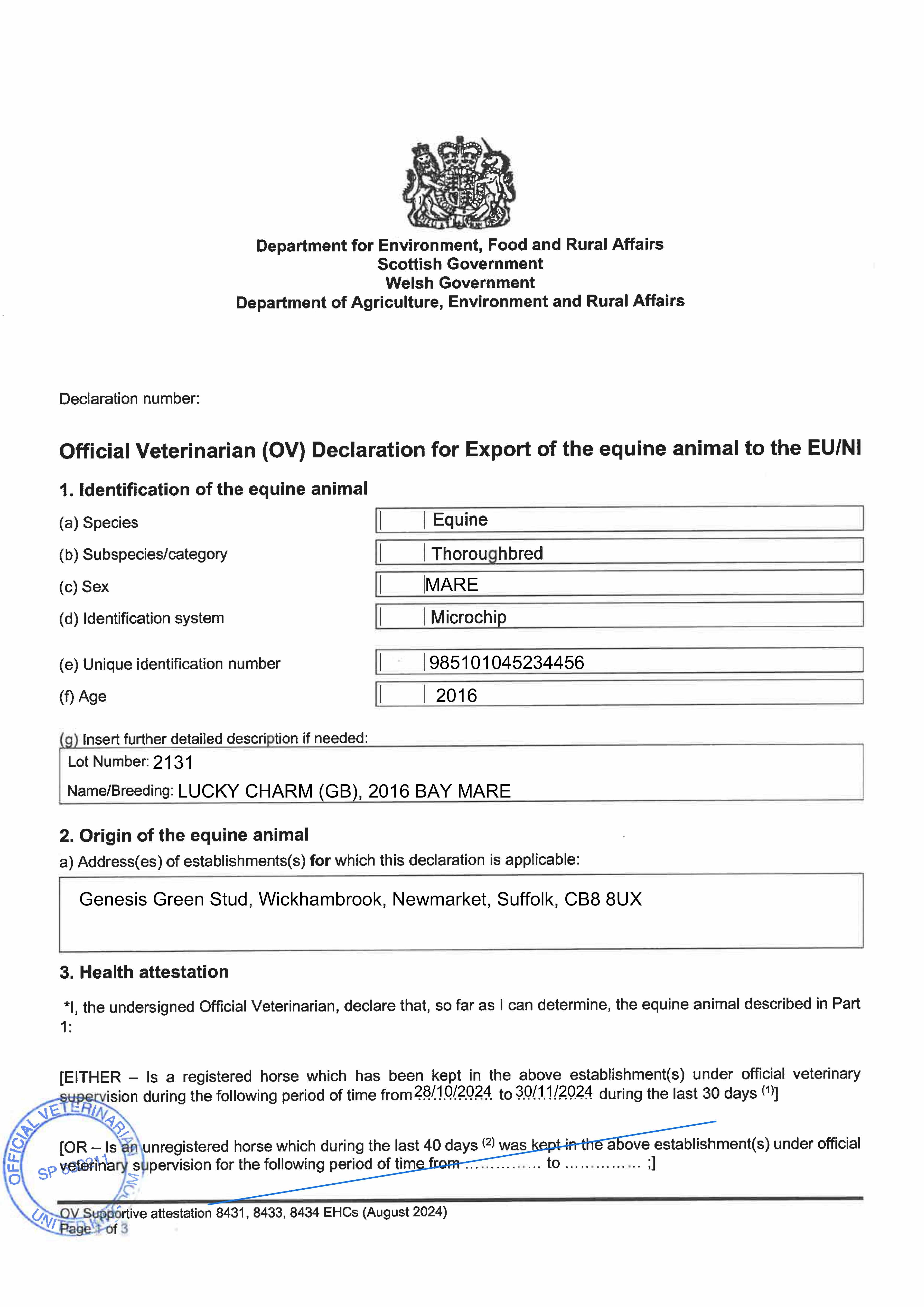 Consignor: Genesis Green Stud Ltd.