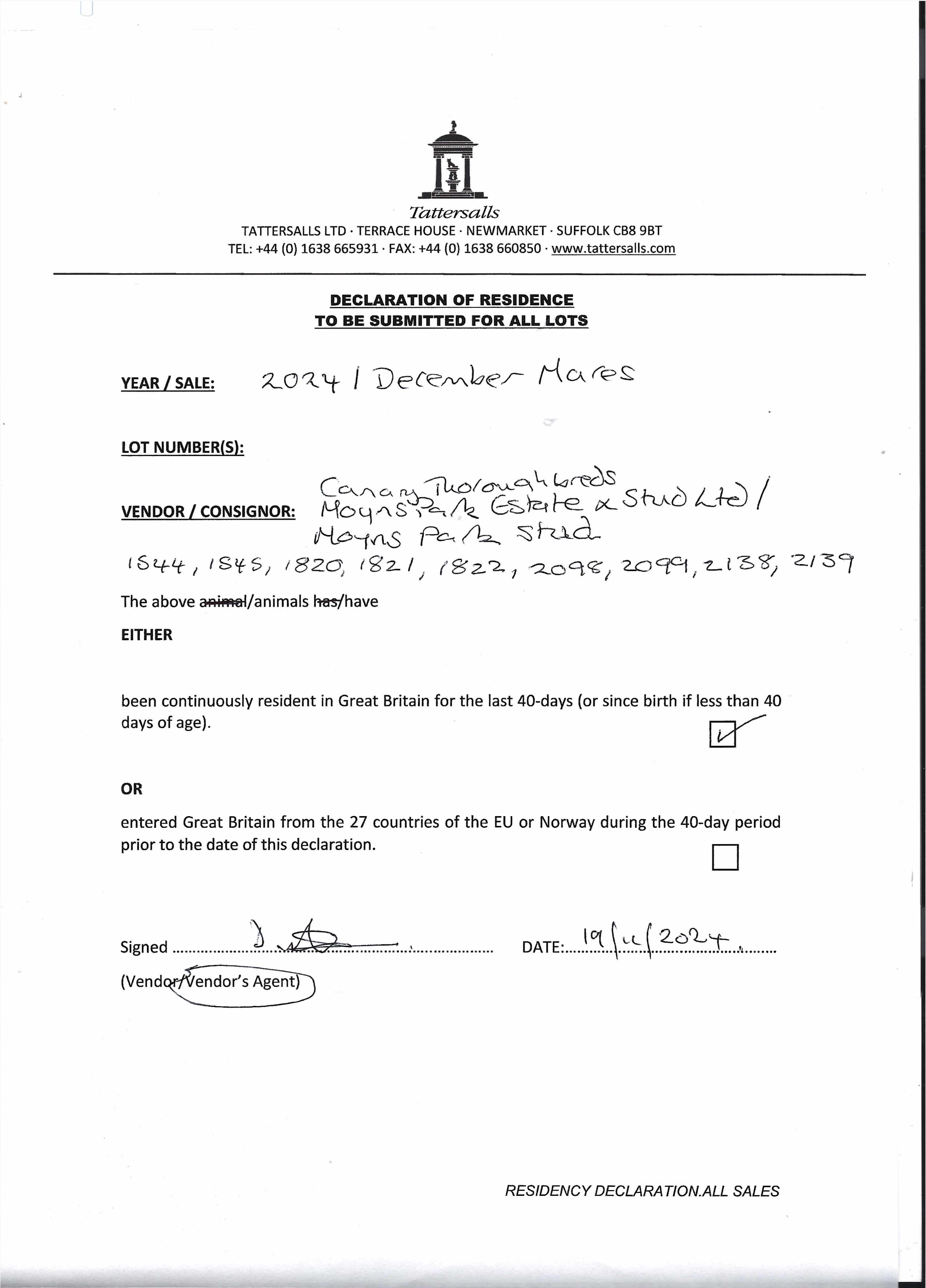 Consignor: Moyns Park Stud - part of a Dispersal