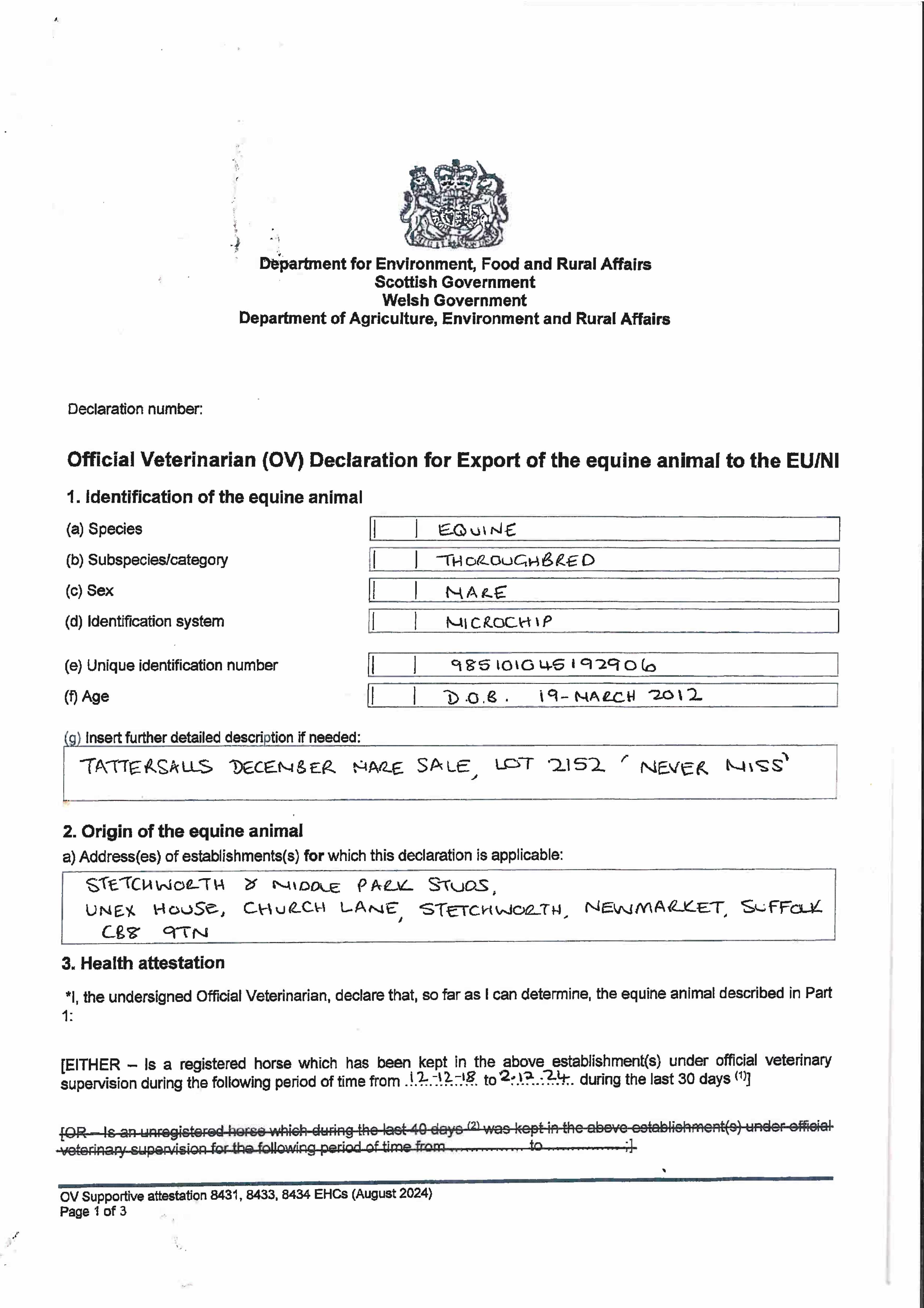 Online Sale - 13th August 2025 lot 120 Welcome Retreat (GB) (F. by Oasis Dream (GB)), James Owen Racing=>Vendor 5,000 gns