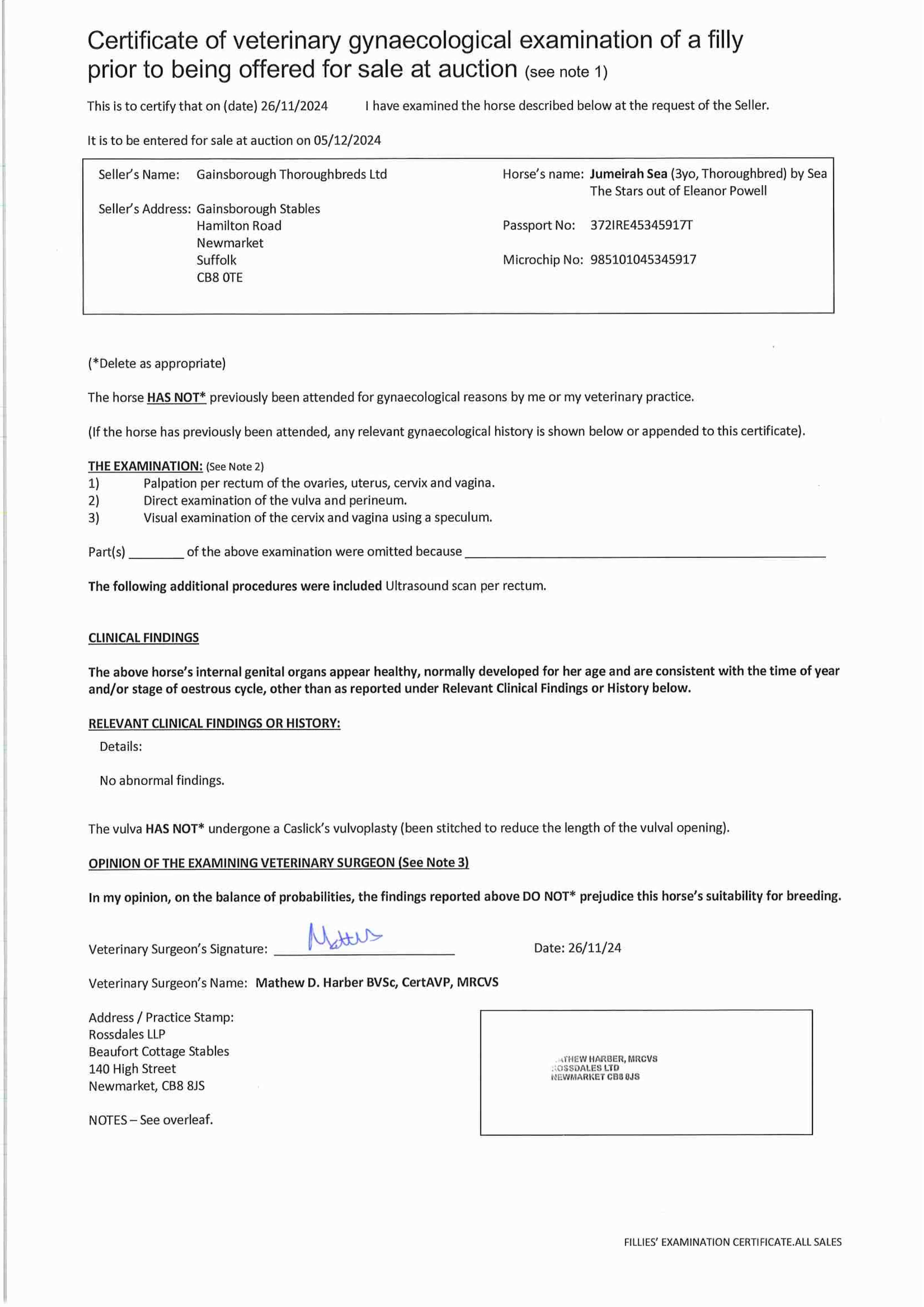 JUMEIRAH SEA (IRE), placed twice at 3 years, 2024.