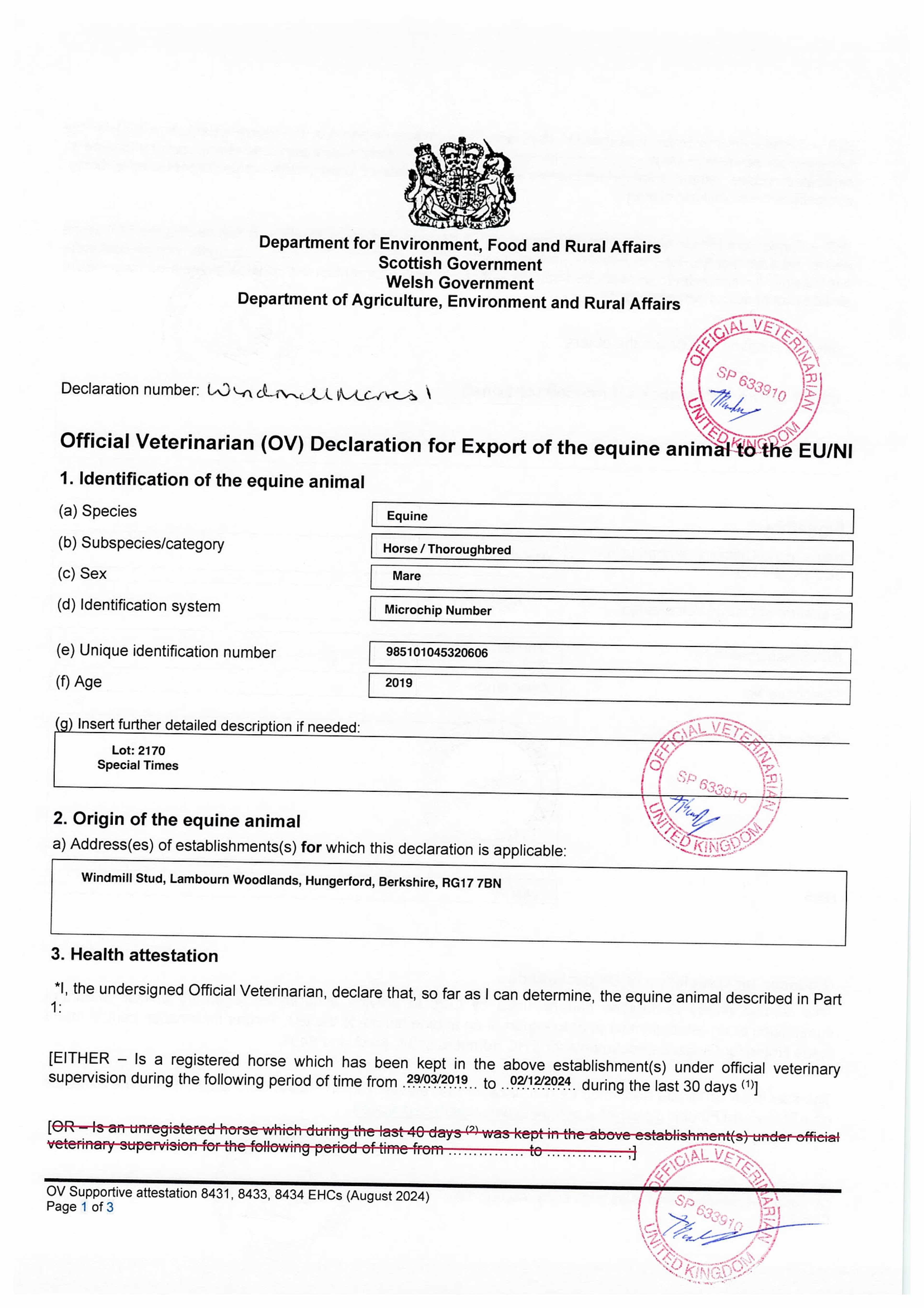Online Sale - 17th August 2023 lot 58 Sisu (GB) (M. by Lawman (FR)), Windmill Farm=>Vendor 10,000 gns