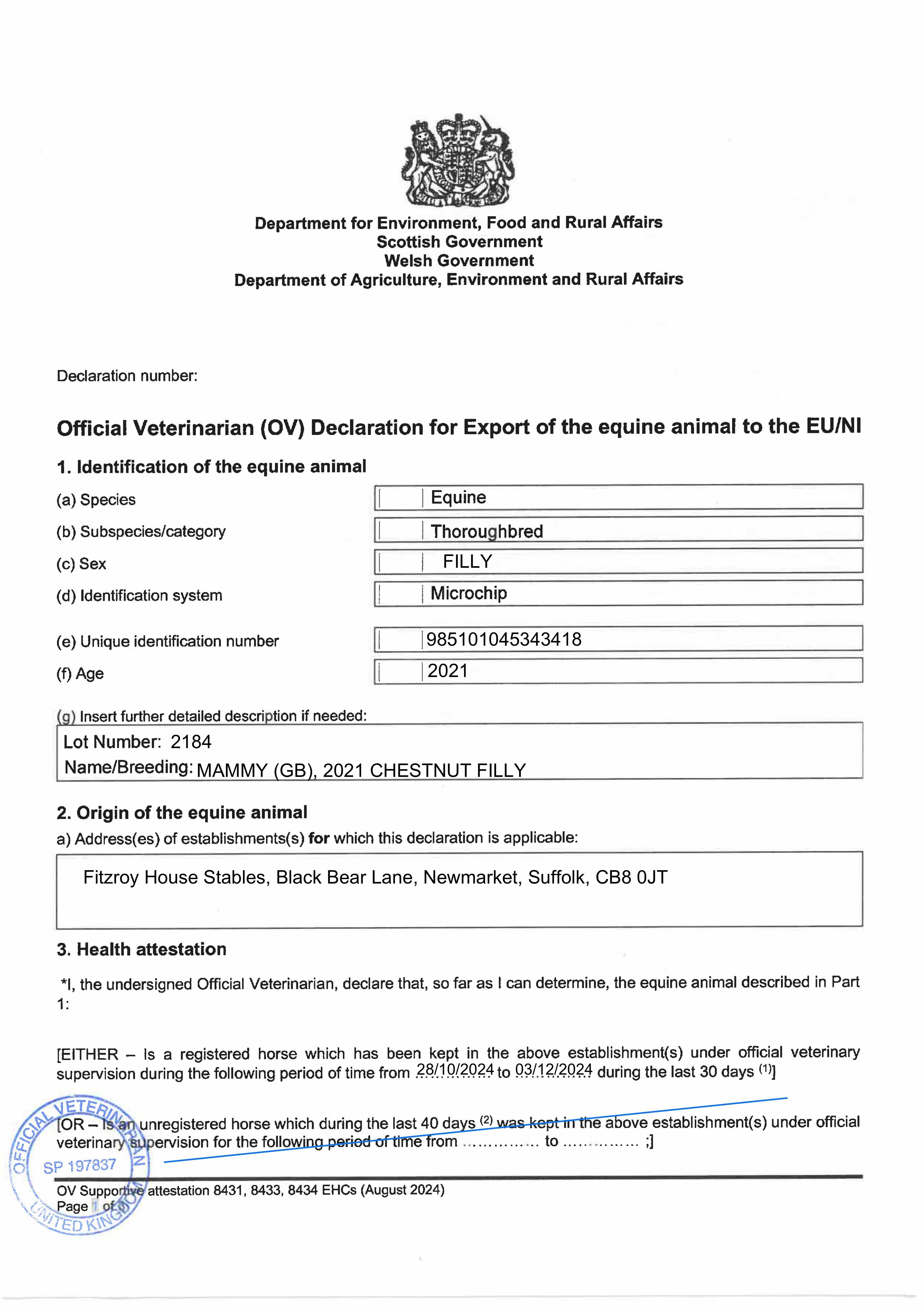 October Yearling Sale, Book 3 2024 lot 1281 F. by Saxon Warrior (JPN) 2023, The National Stud Ltd.=>Peter & Ross Doyle Bloodstock 34,000 gns