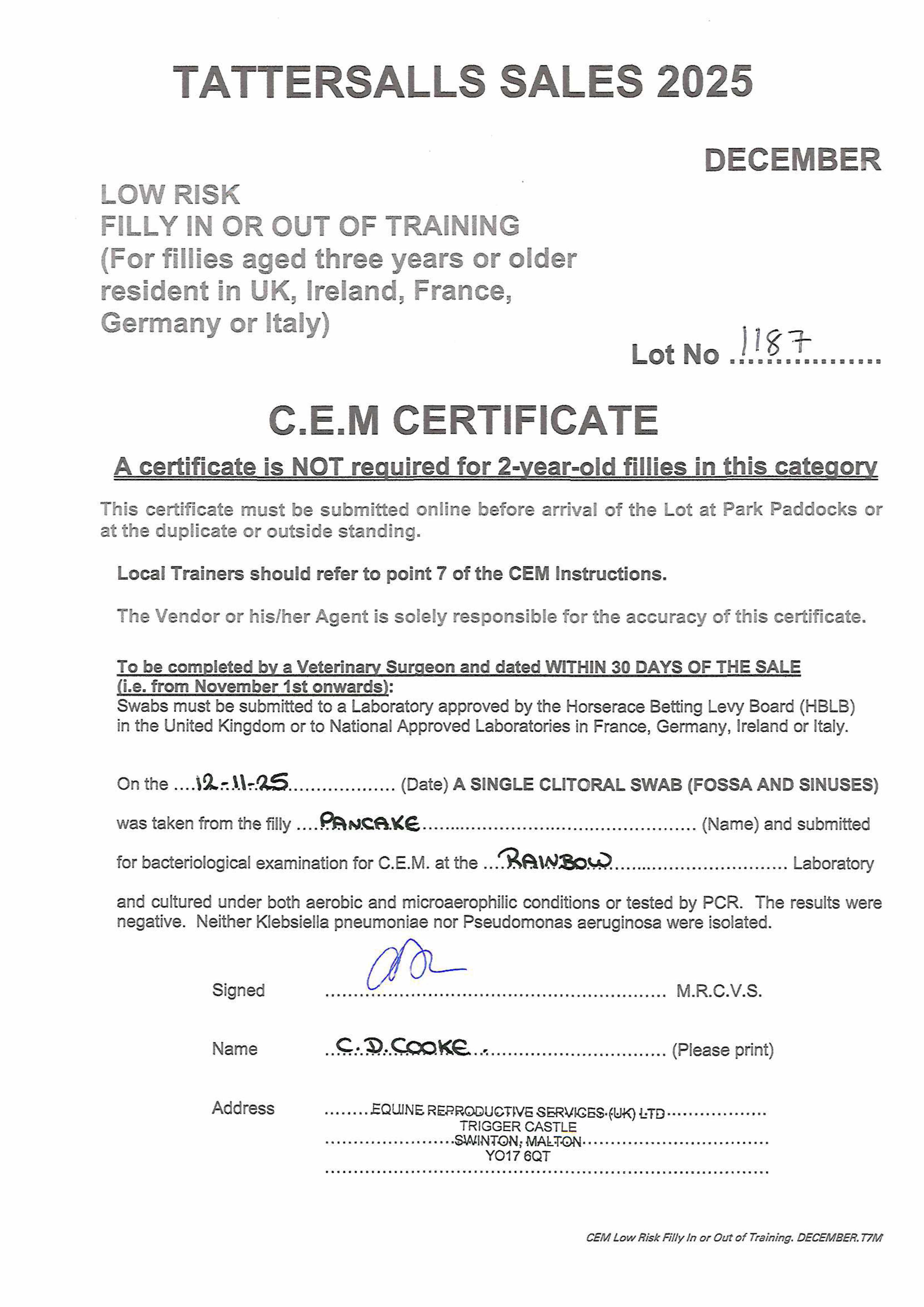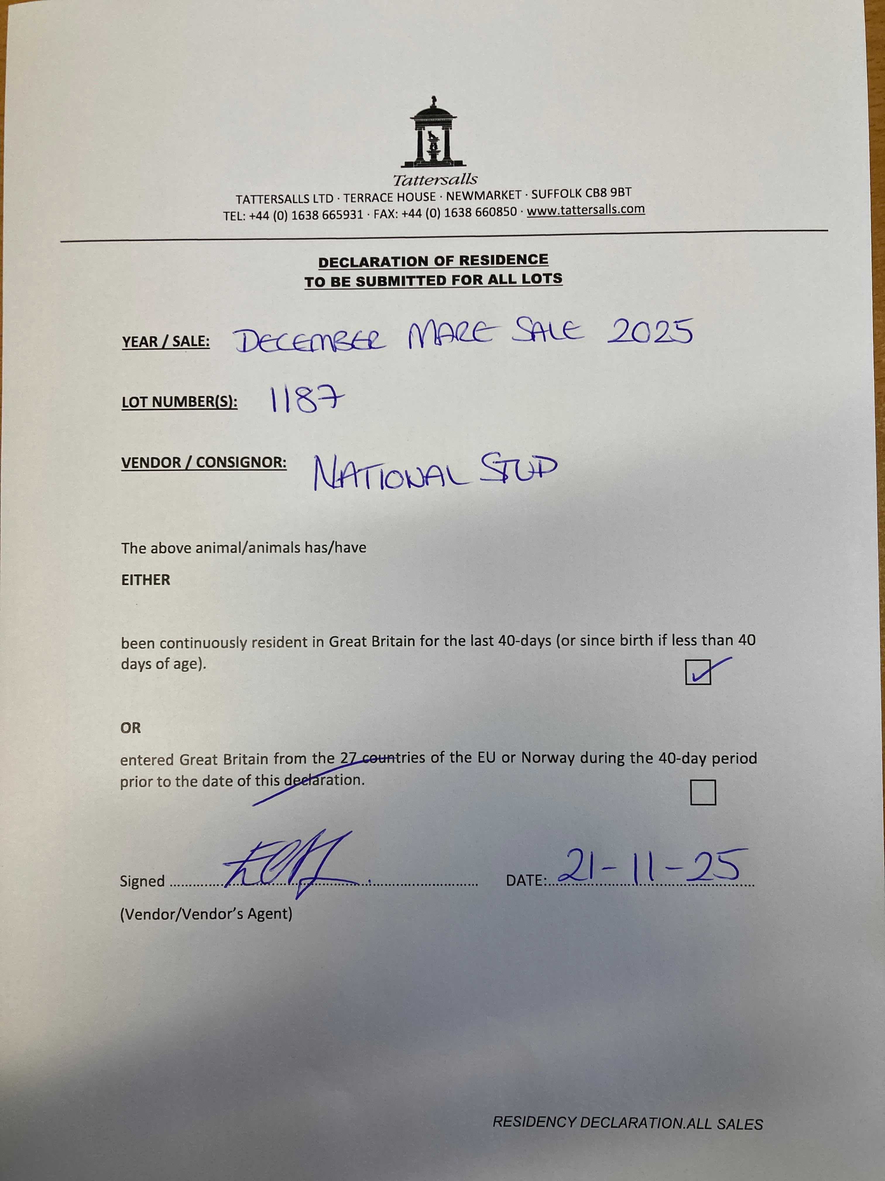 Online Sale - 23rd October 2025 lot 142 Miss Behaving (GB) (M. by Showcasing (GB)), Rossenarra Stud, Ireland=>Brendan Laffan 1,000 gns