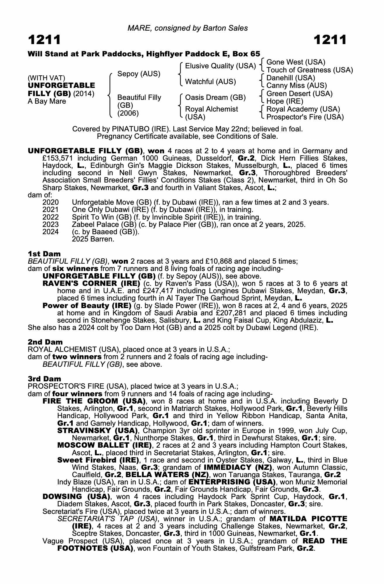 Autumn Horses In Training Sale 2023 lot 965 One Only Dubawi (IRE) (F. by Dubawi (IRE)), Barton Sales=>Alessandro Marconi 22,000 gns