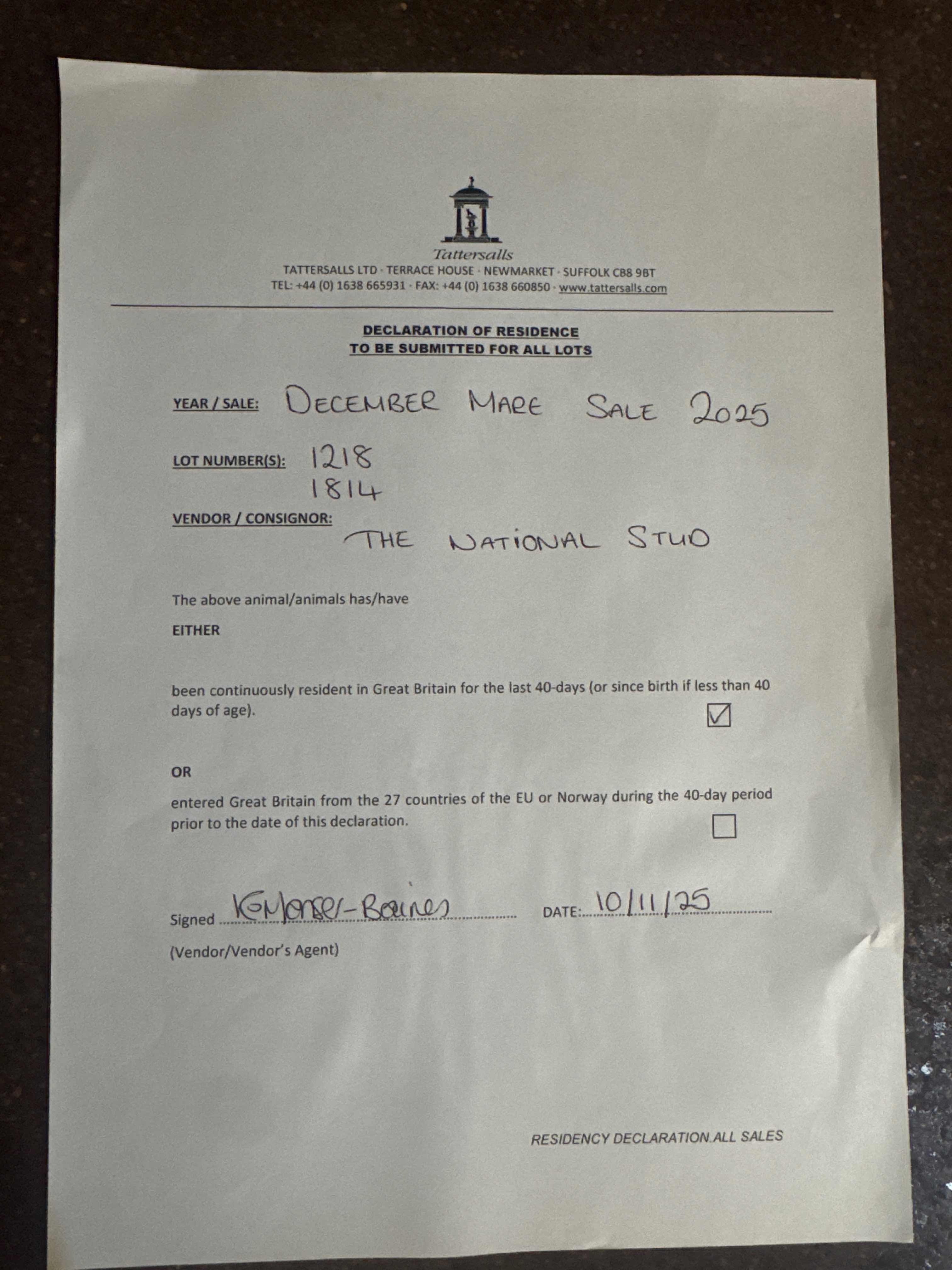 Consignor: The National Stud Ltd.