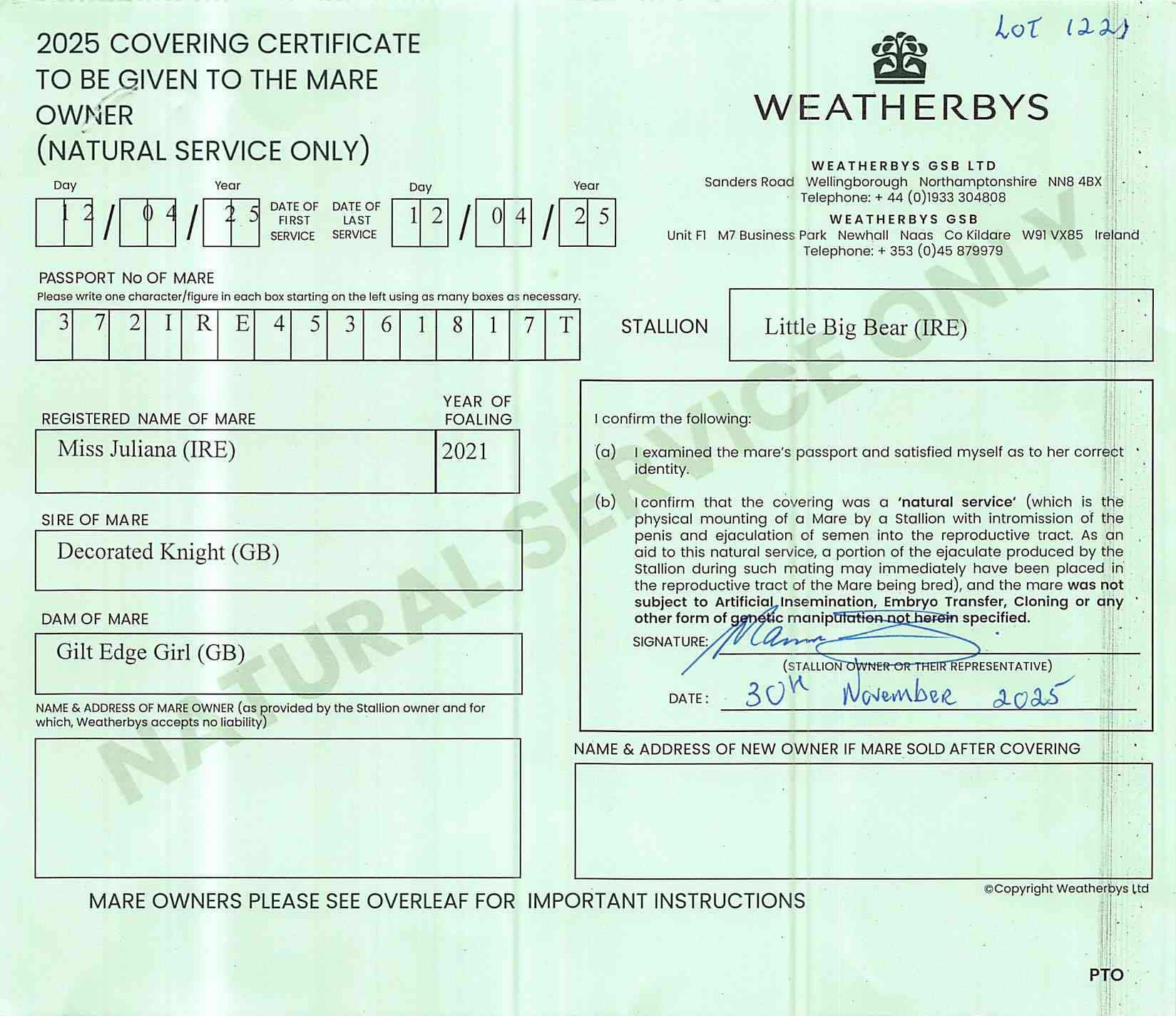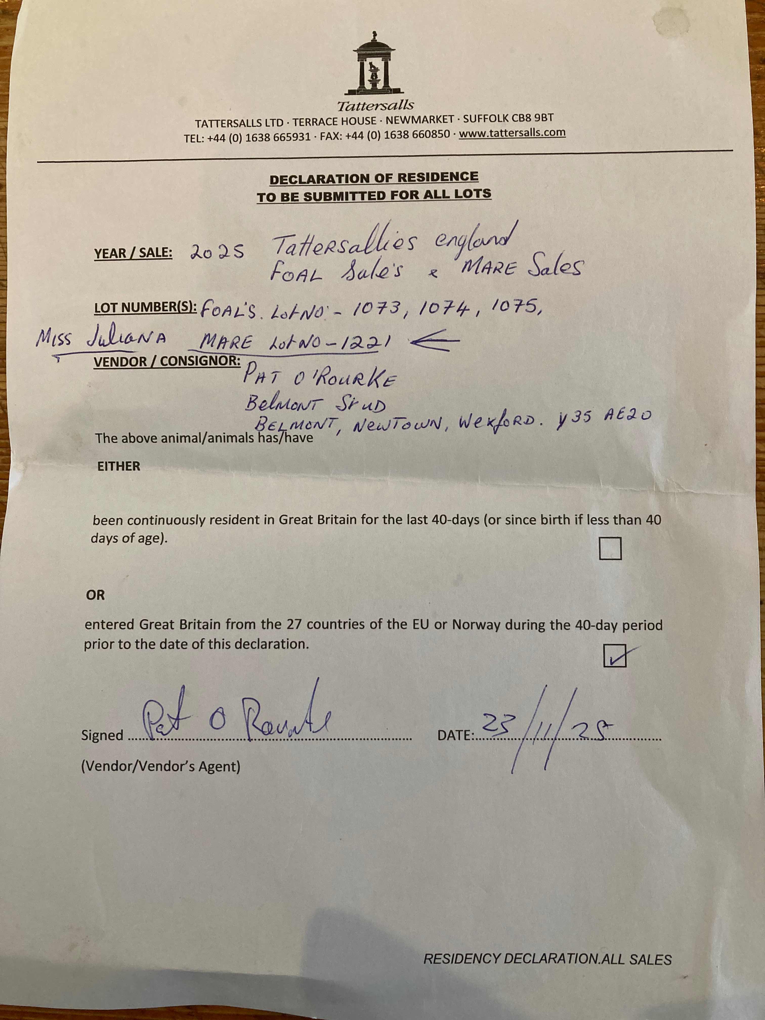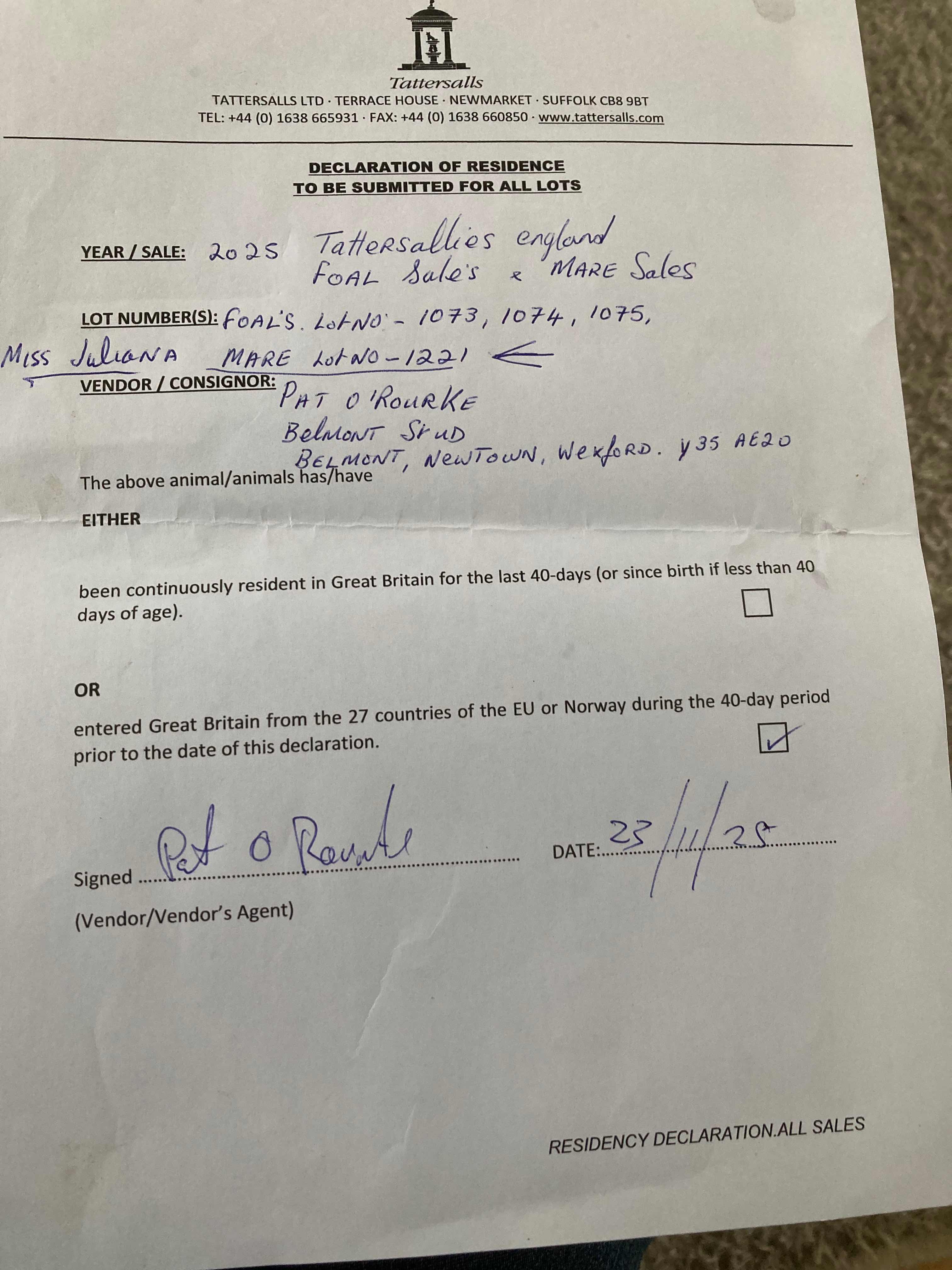December Mare Sale 2024 lot 1256, Blue Diamond Stud Farm (UK) Ltd.=>Belmont Stud 18,000 gns