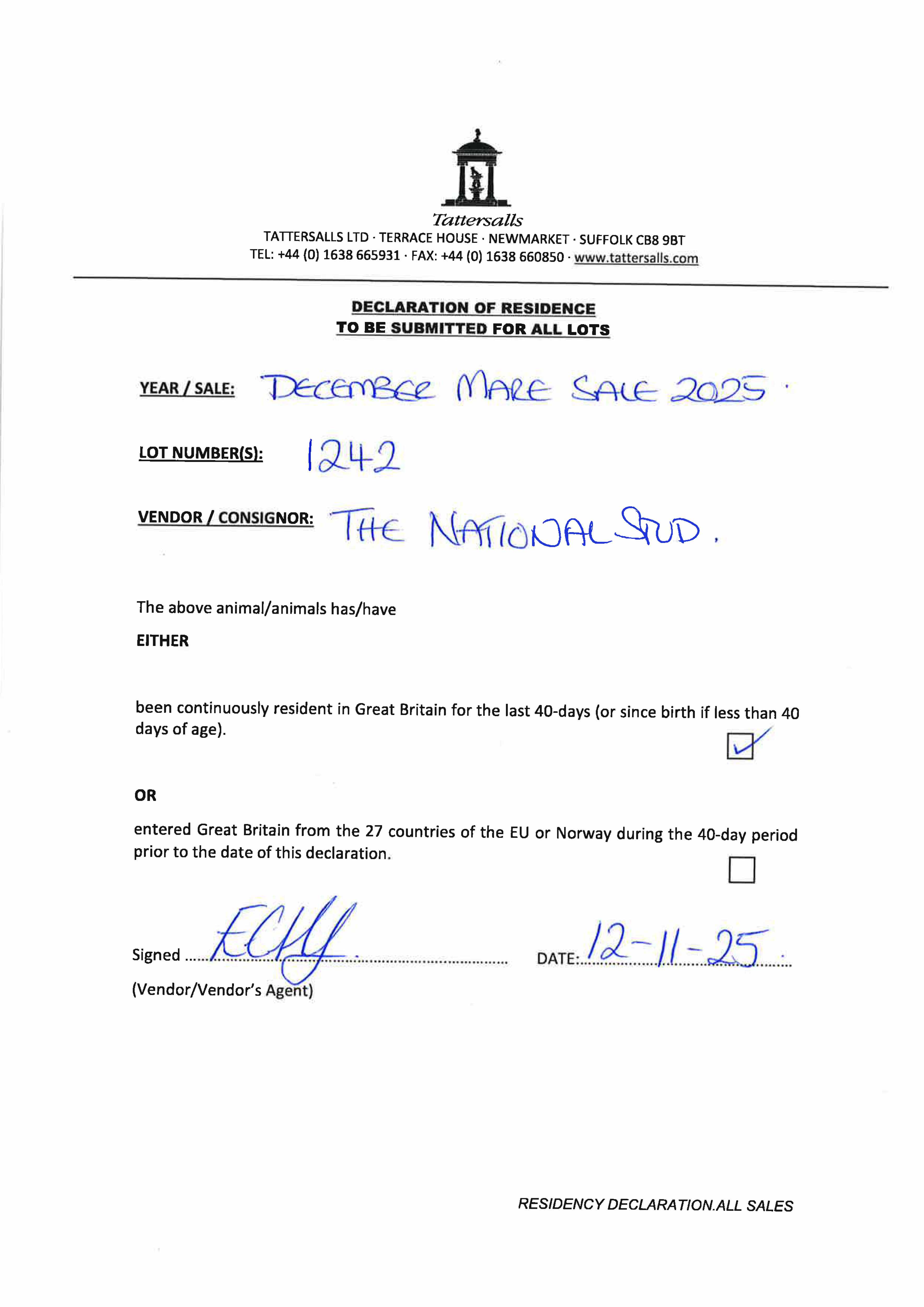 Consignor: The National Stud Ltd.