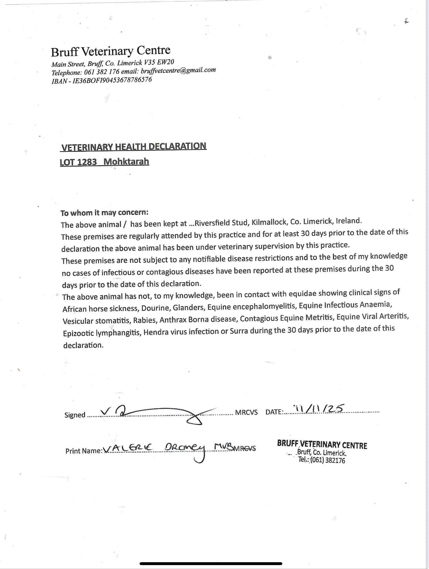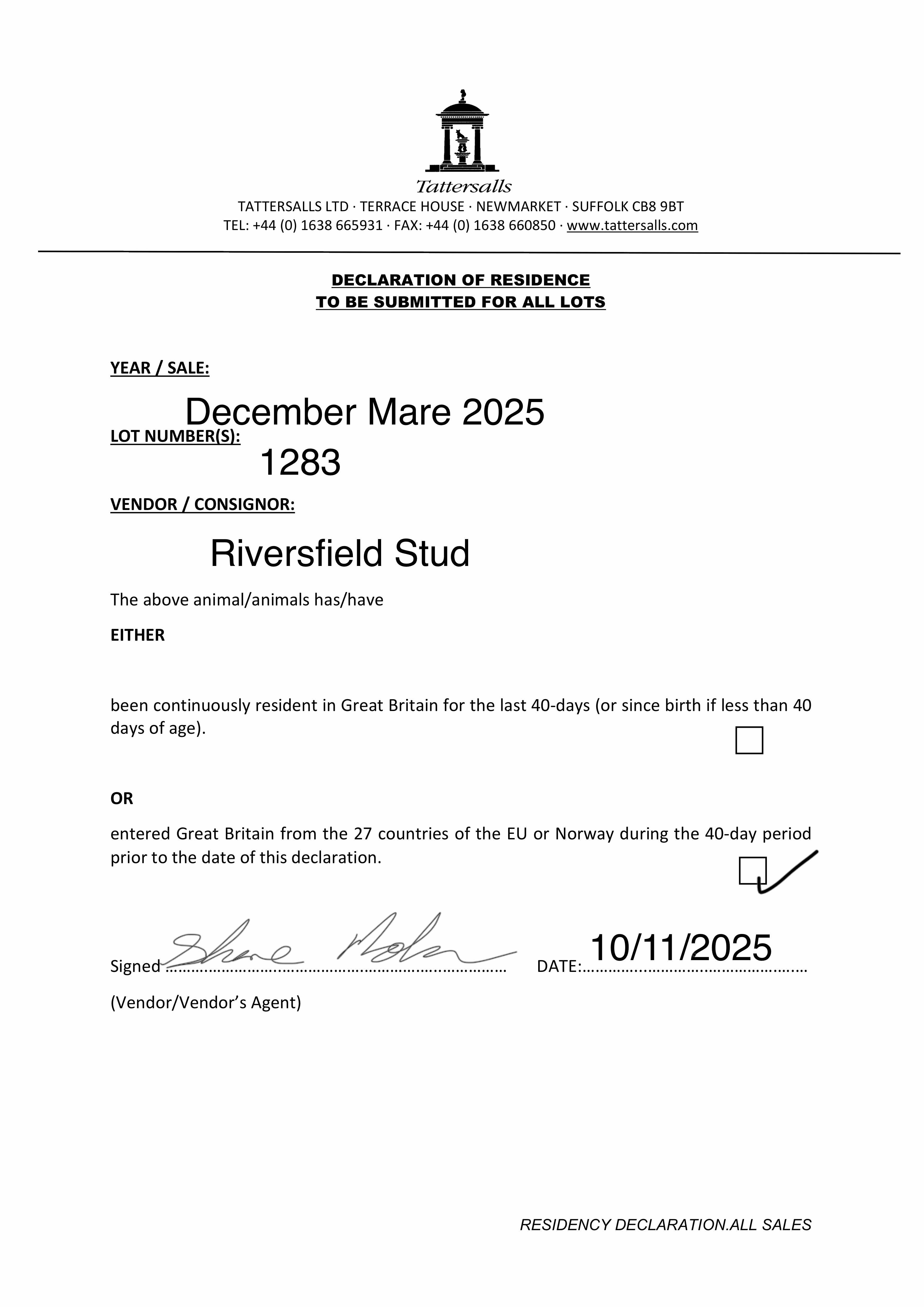 Consignor: Riversfield Stud, Ireland