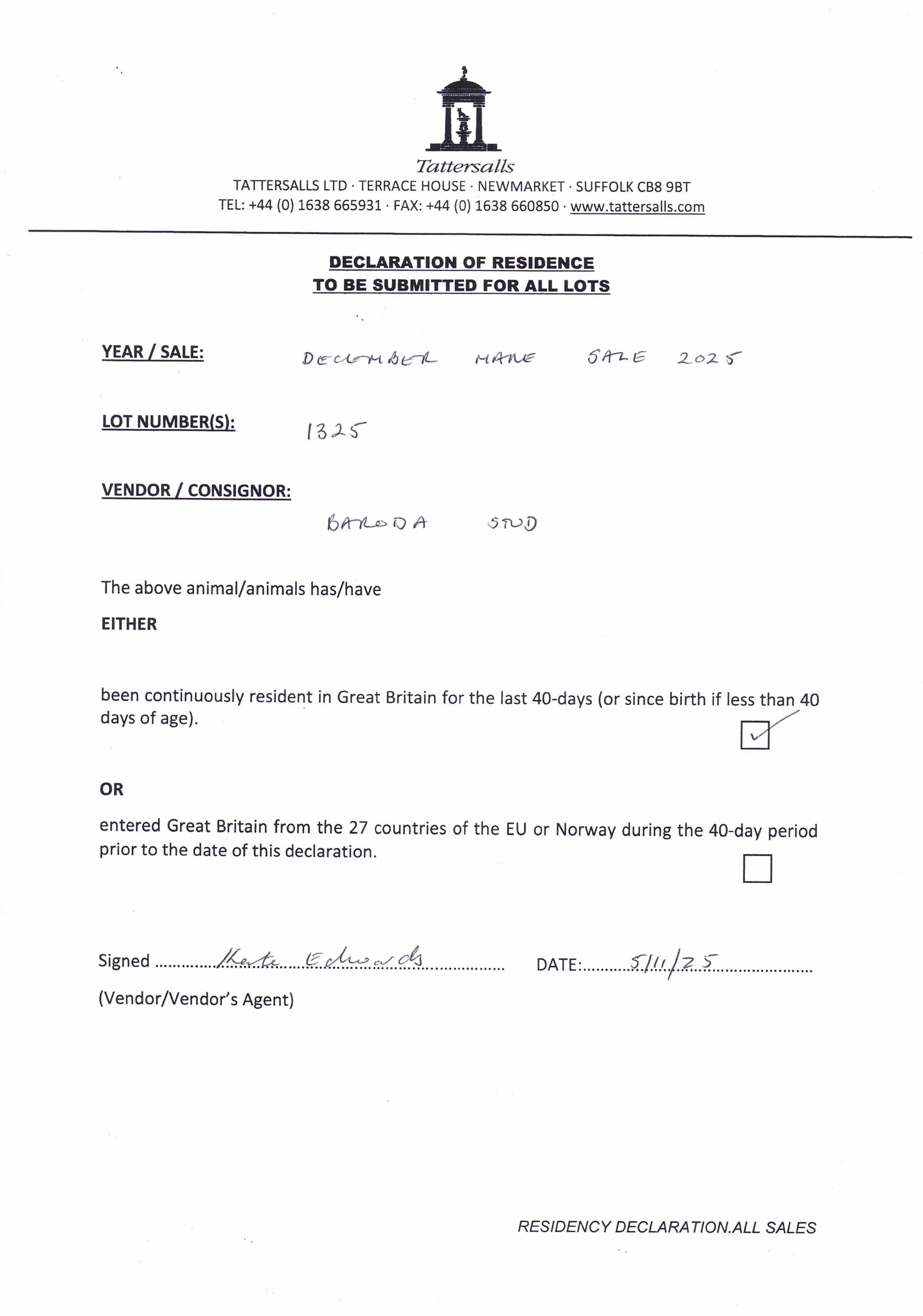 December Mare Sale 2023 lot 1775 Feel Glorious (GB) (M.), European Sales Management=>Vendor 280,000 gns