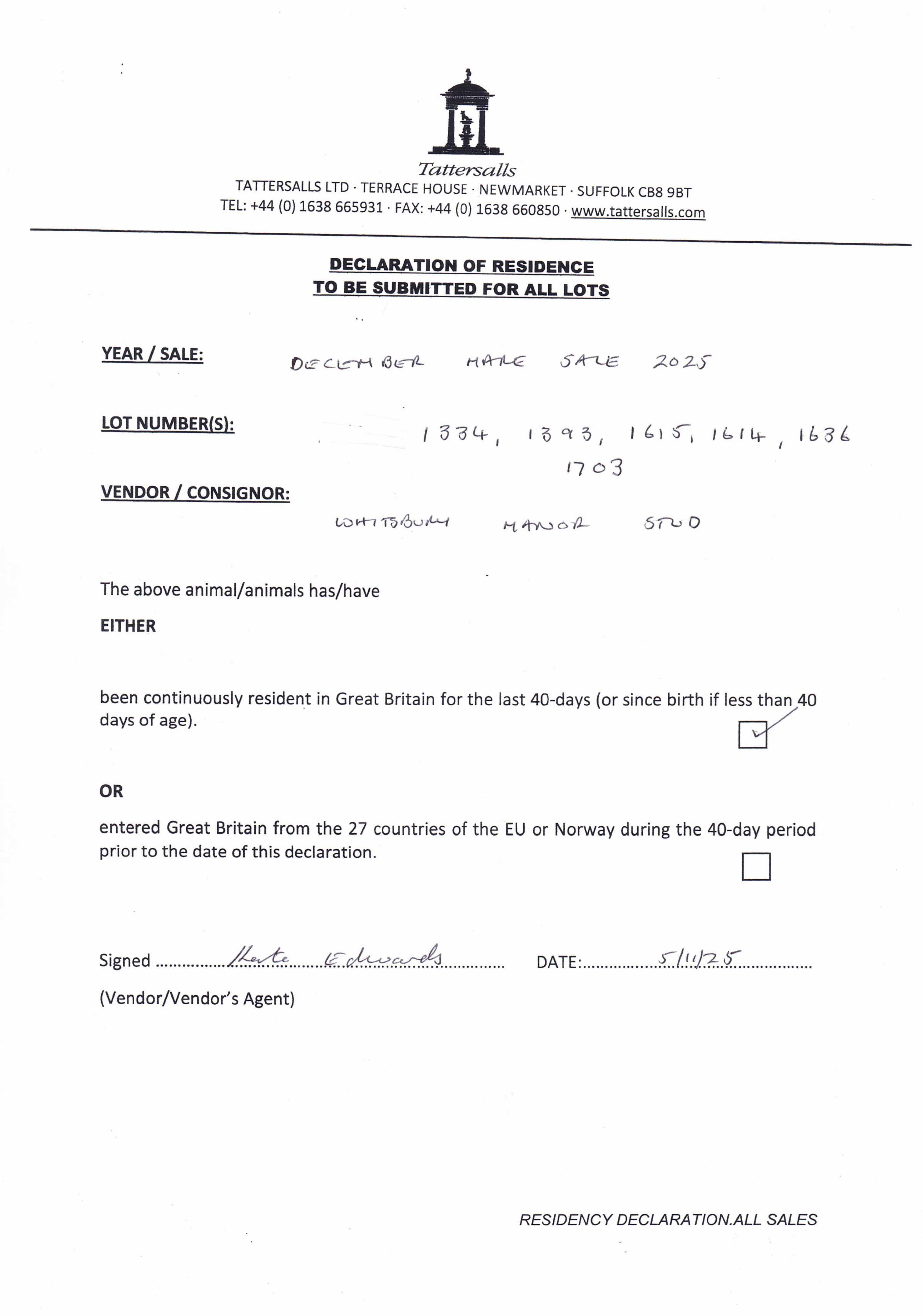 Consignor: Whitsbury Manor Stud