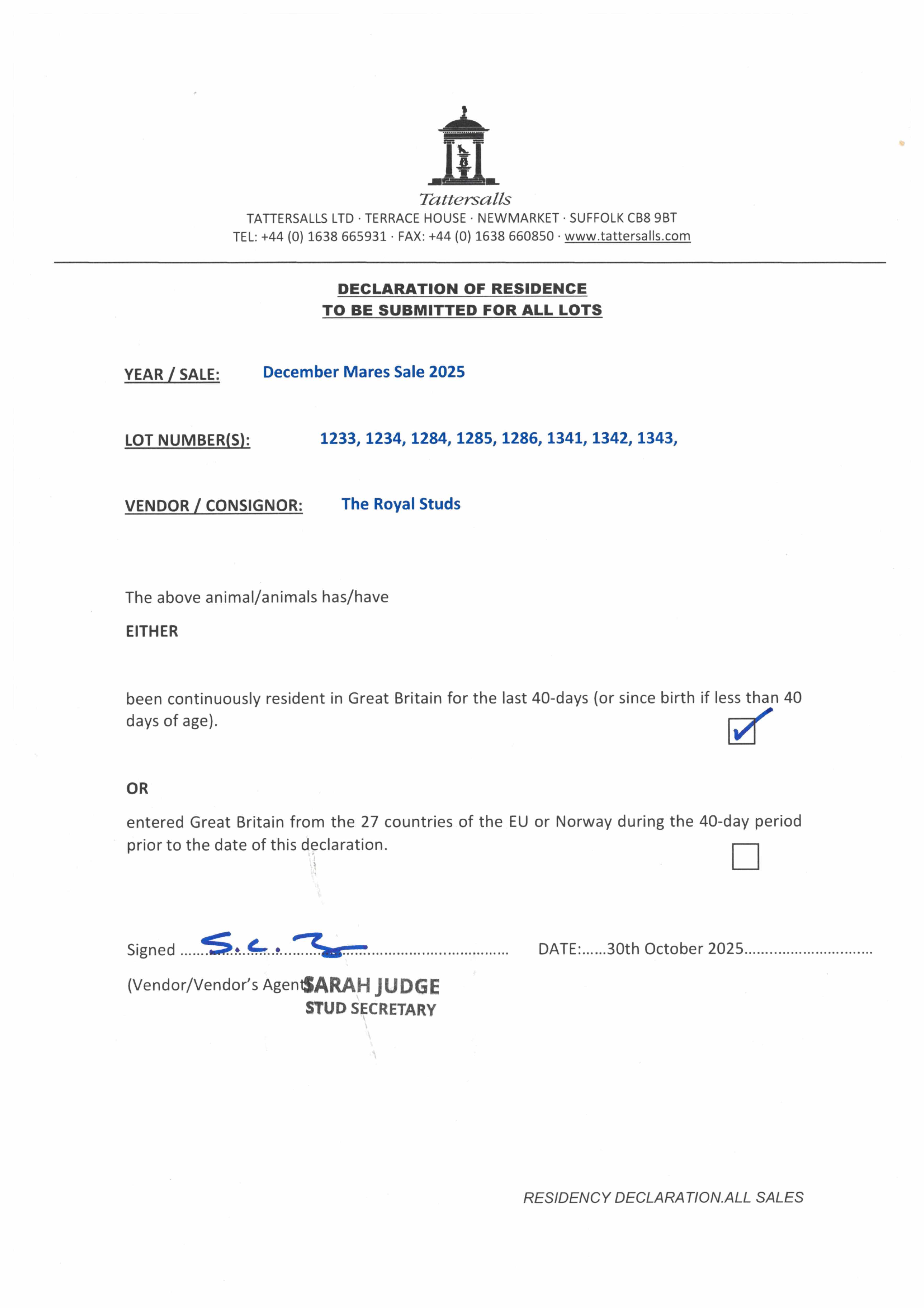 Consignor: The Royal Studs