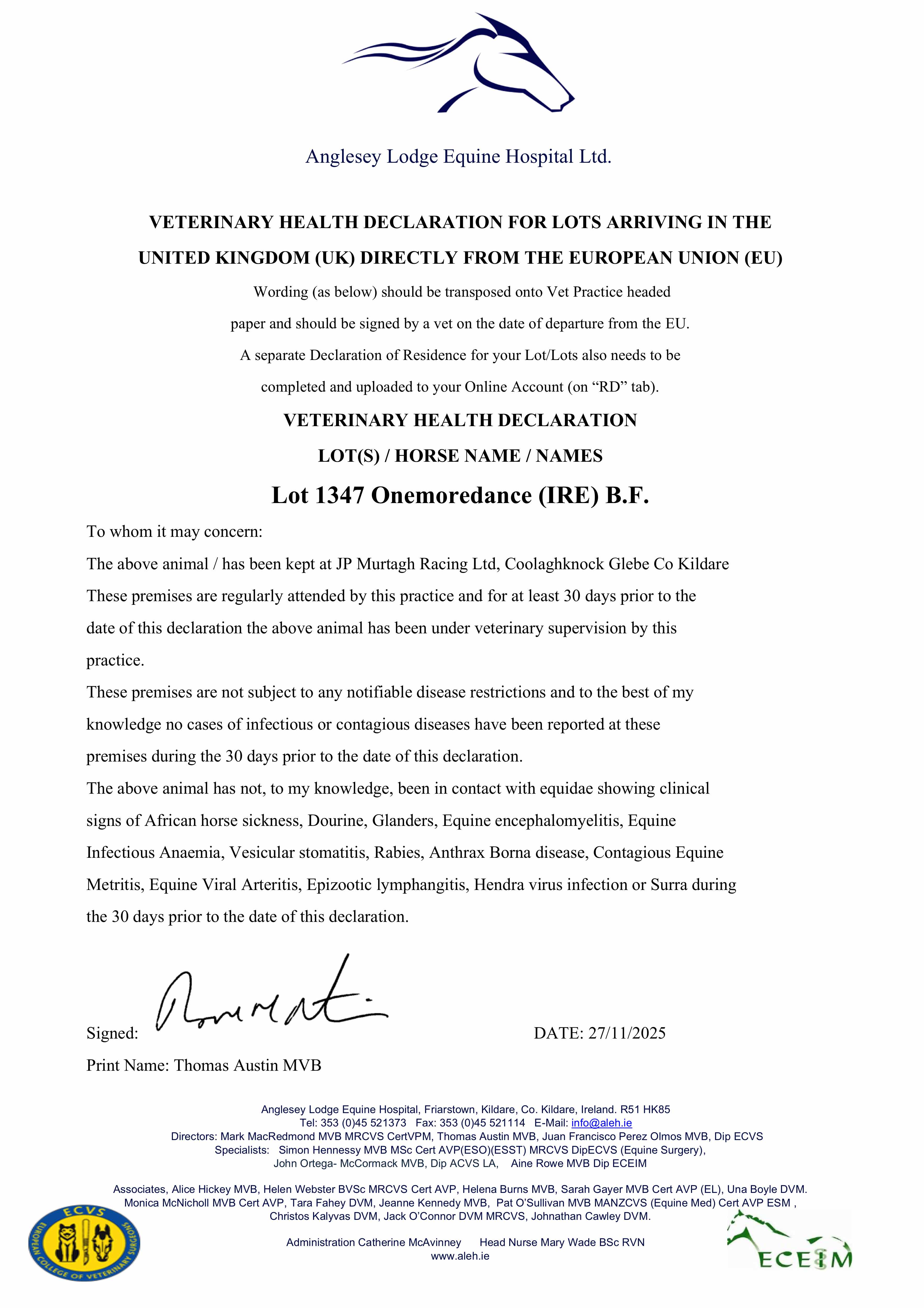 Sunday 30 November:  Under 2nd dam, QARAABA (GB), dam of: ASTRONOMER (USA), placed 5 times in U.S.A. including second in Seabiscuit Handicap, Del Mar, Gr.2.