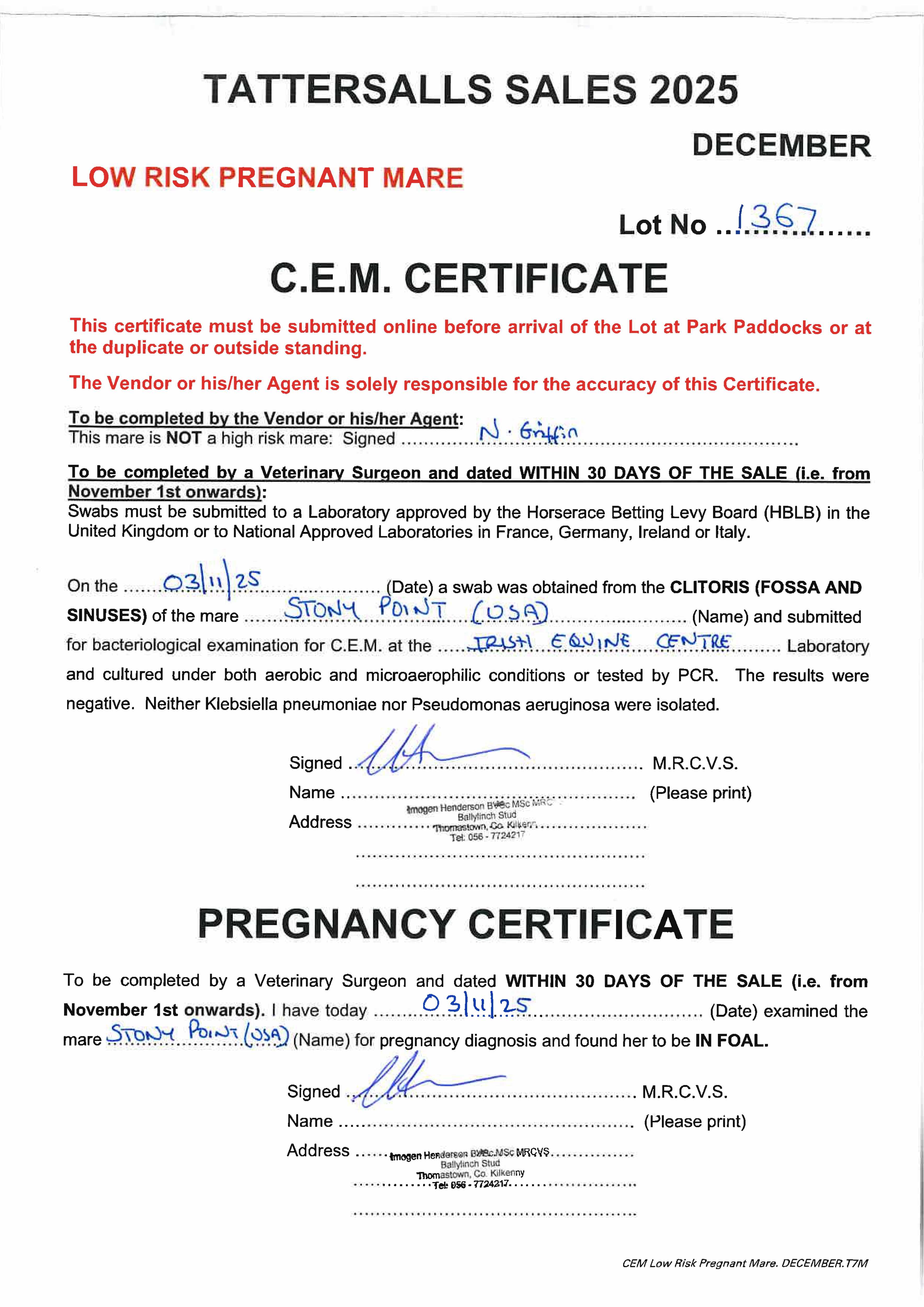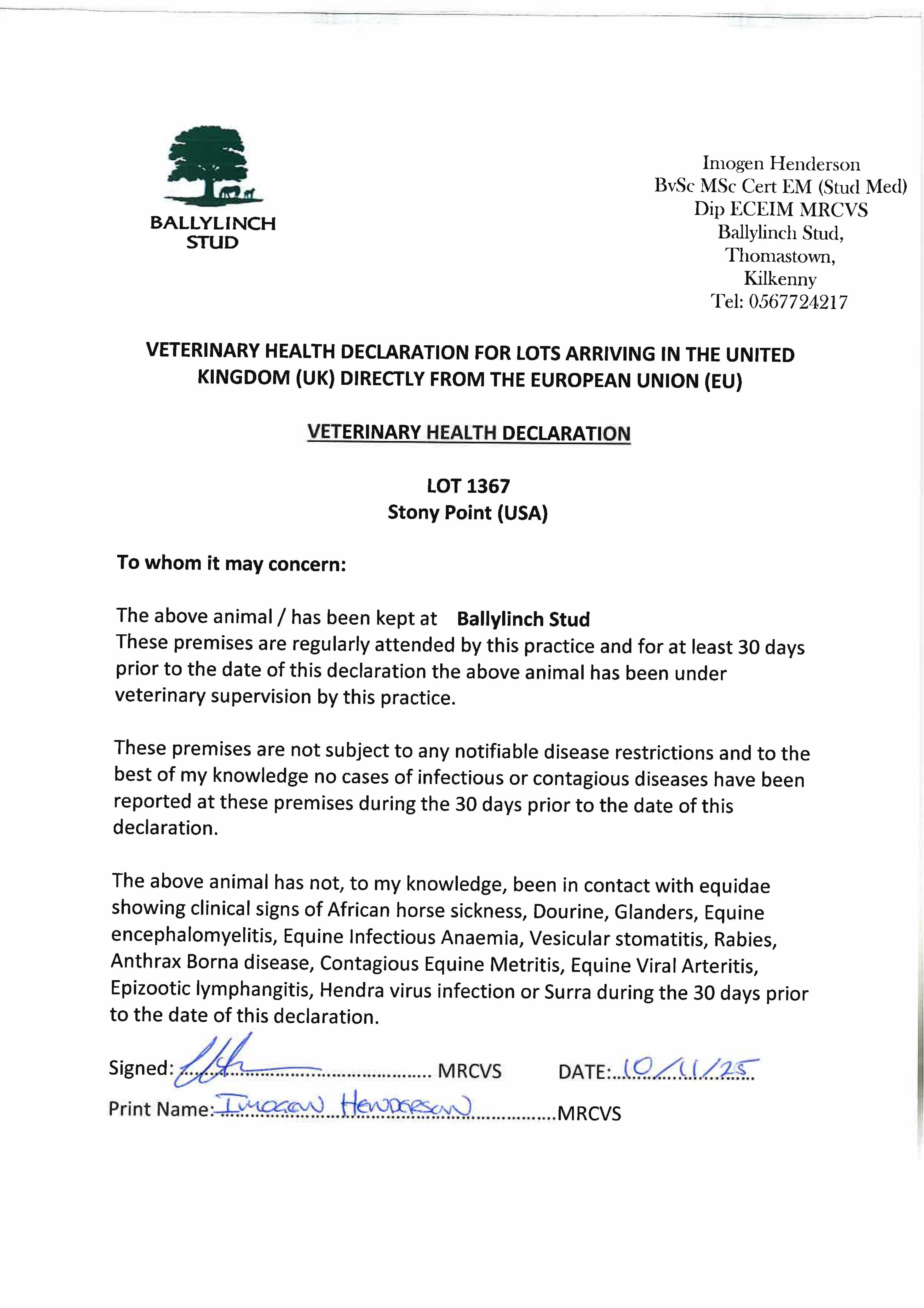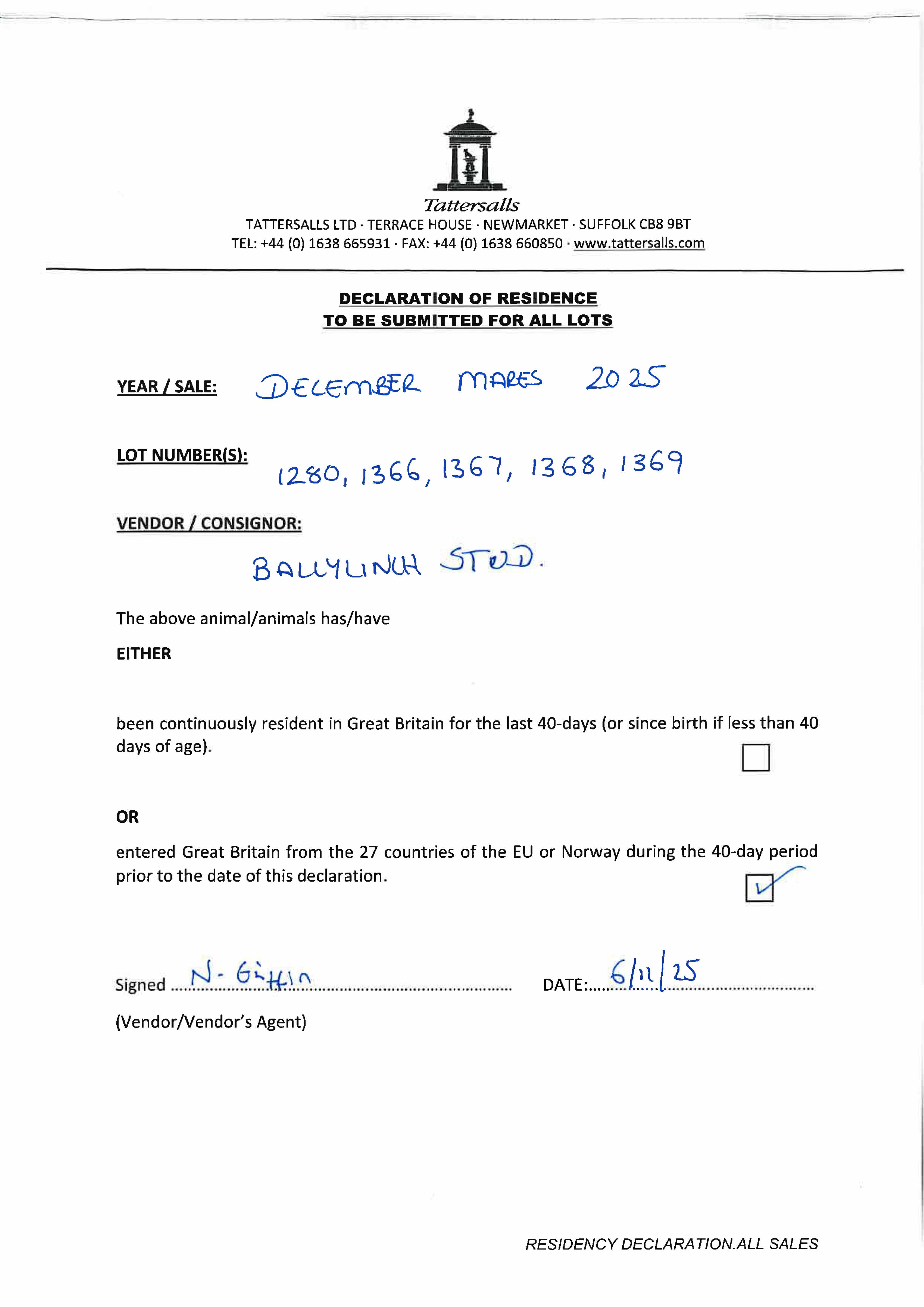 Electronic covering cert at Weatherbys