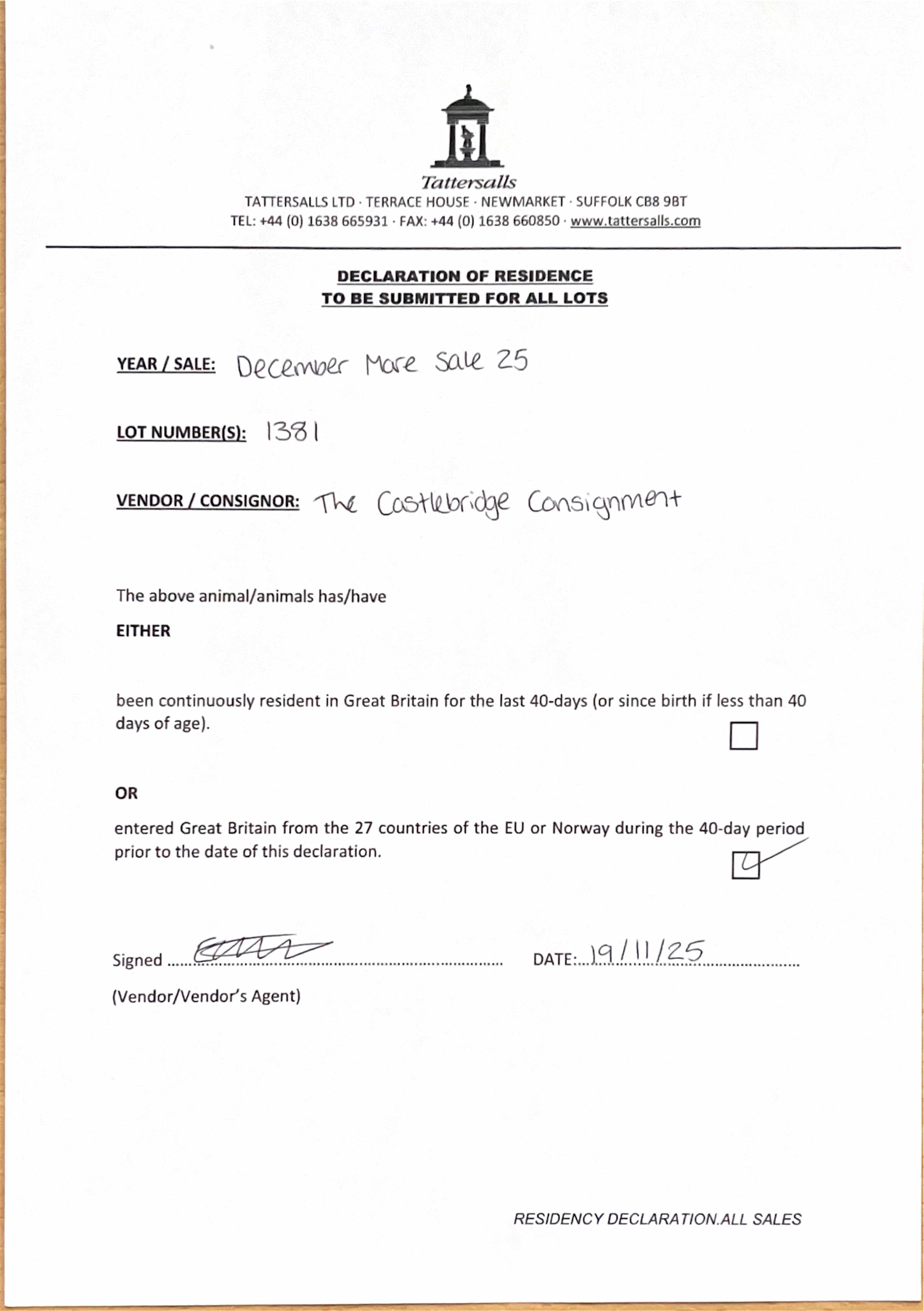 Consignor: The Castlebridge Consignment