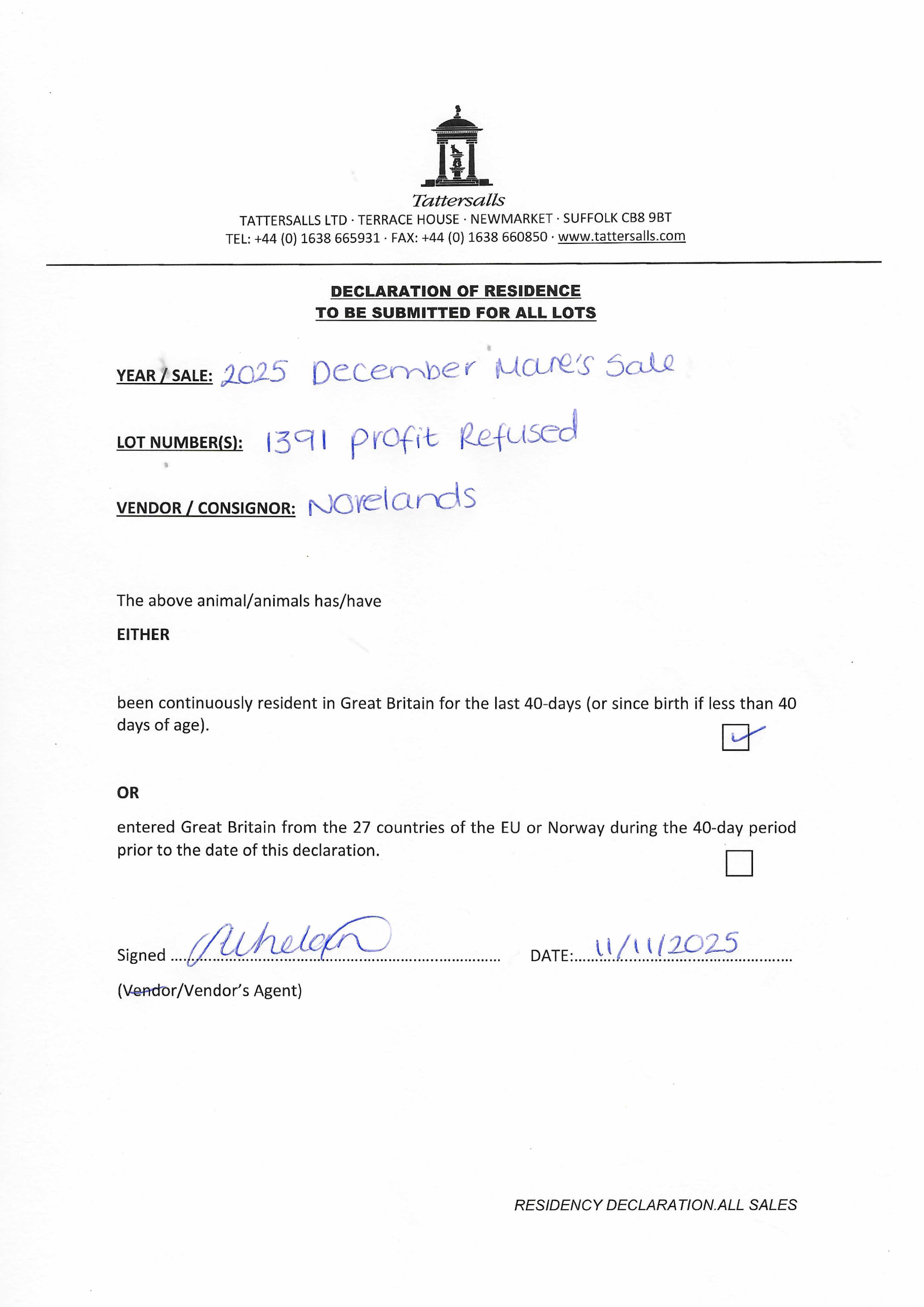Consignor: Norelands, Ireland