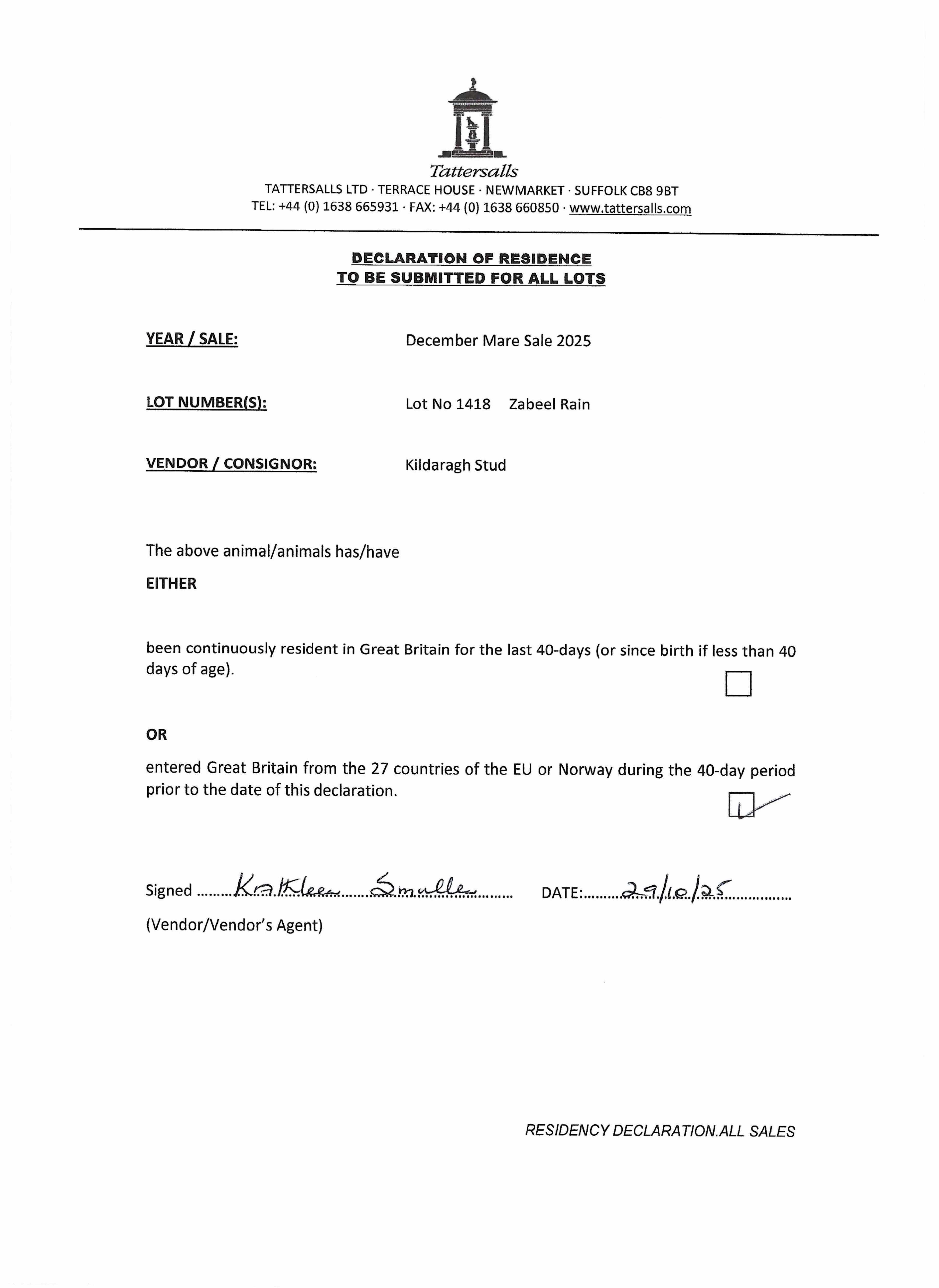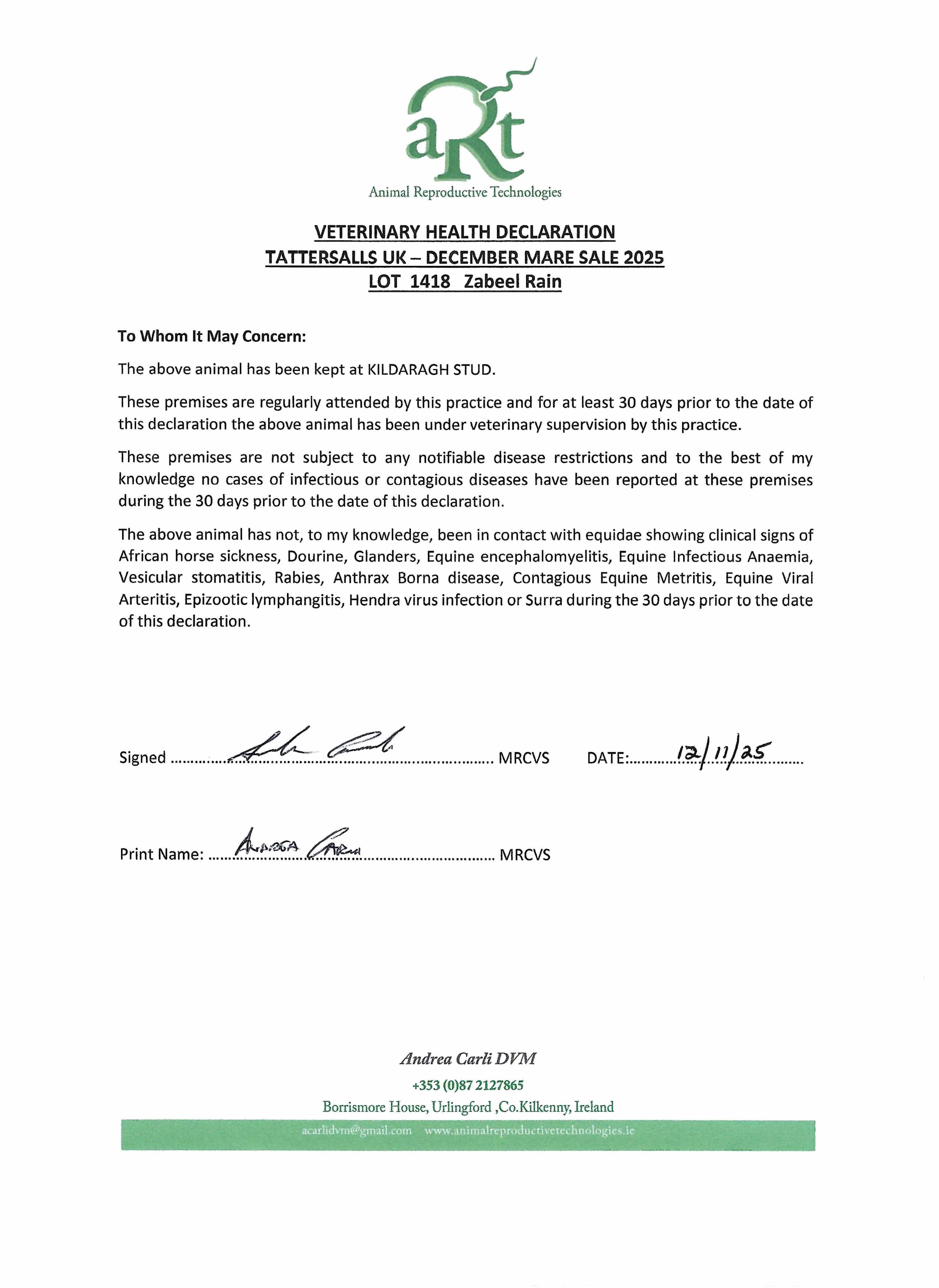 Consignor: Kildaragh Stud, Ireland