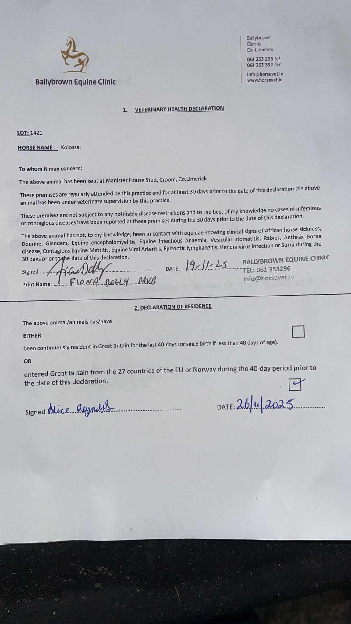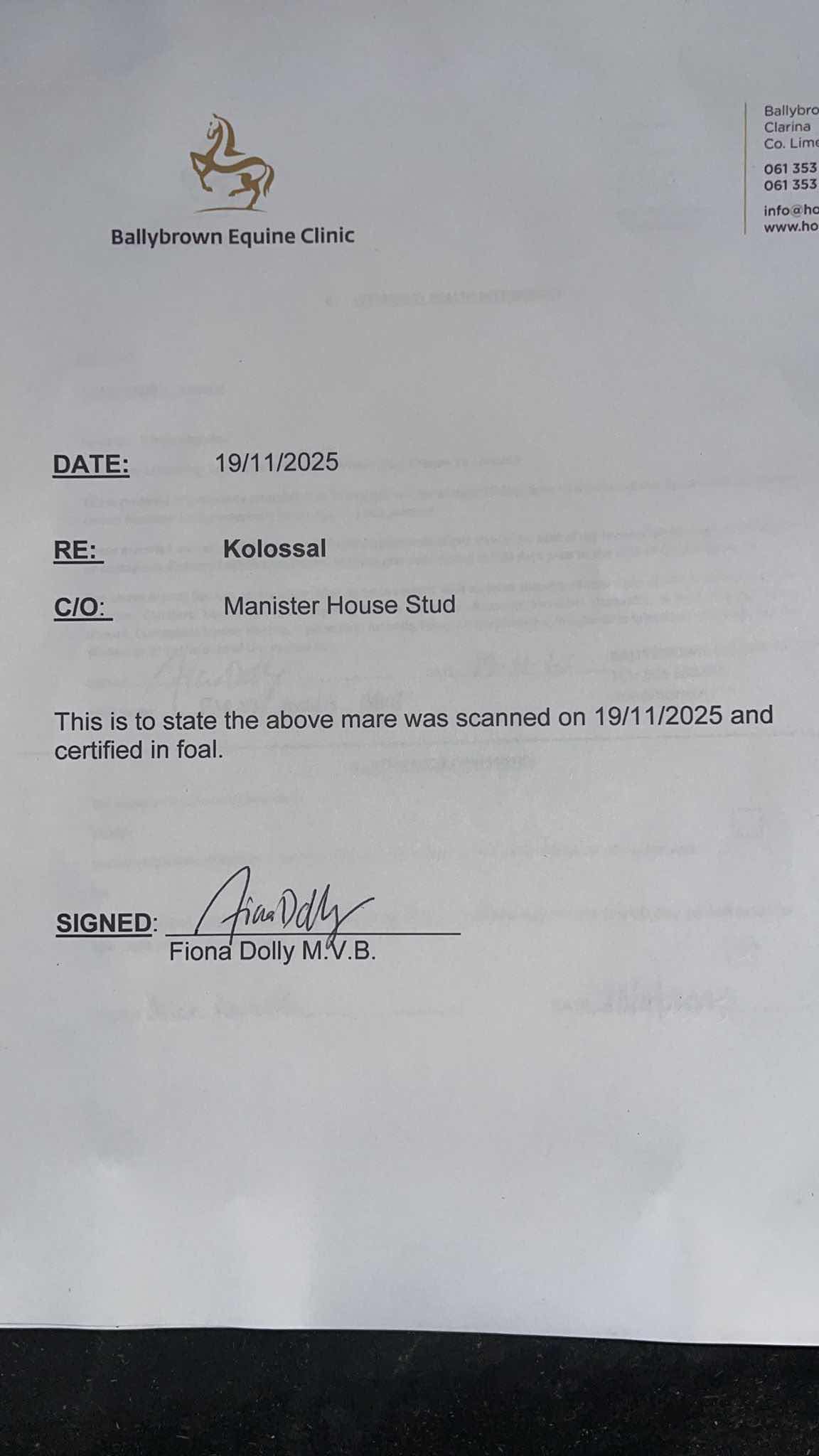 Consignor: Manister House Stud, Ireland