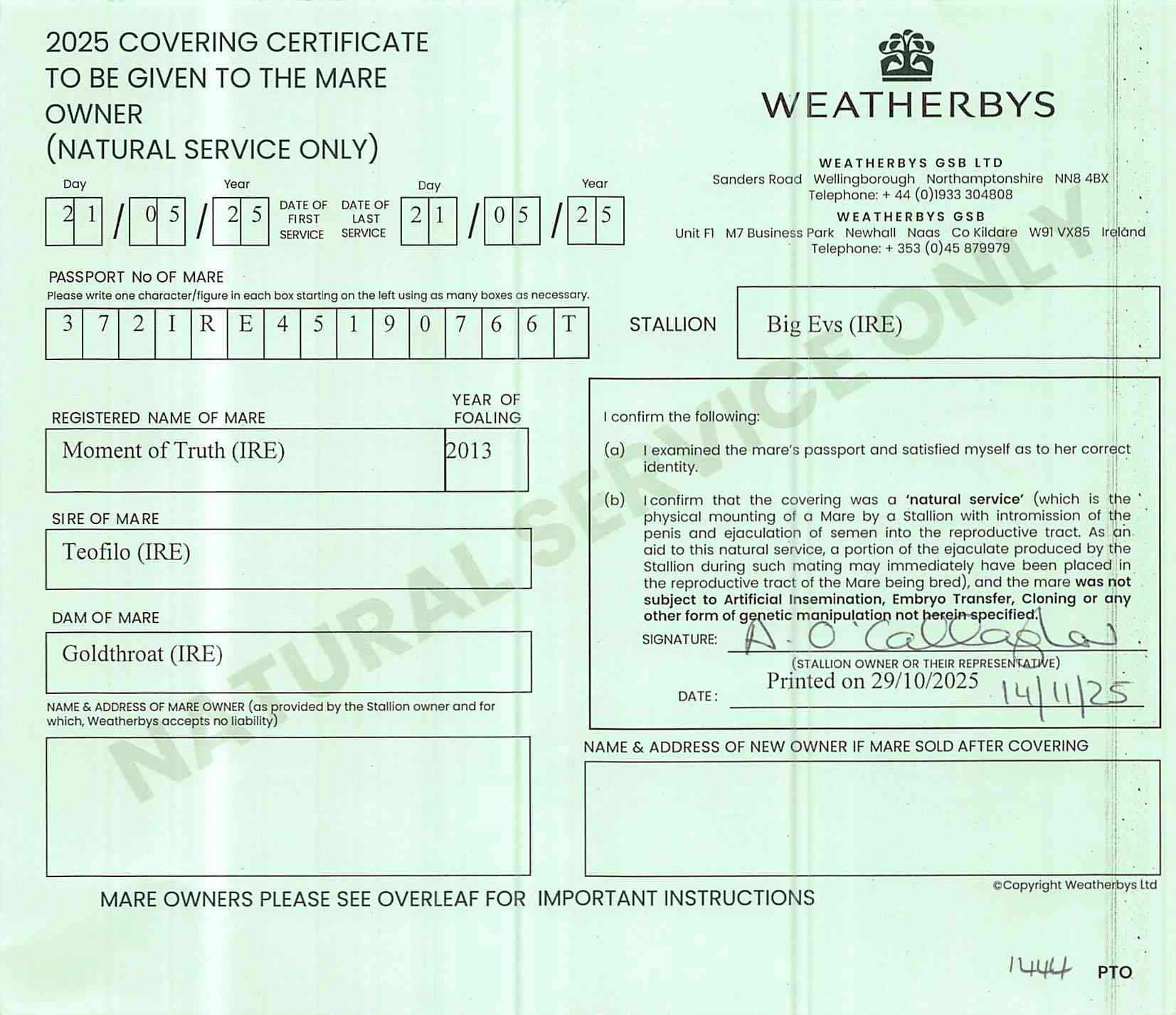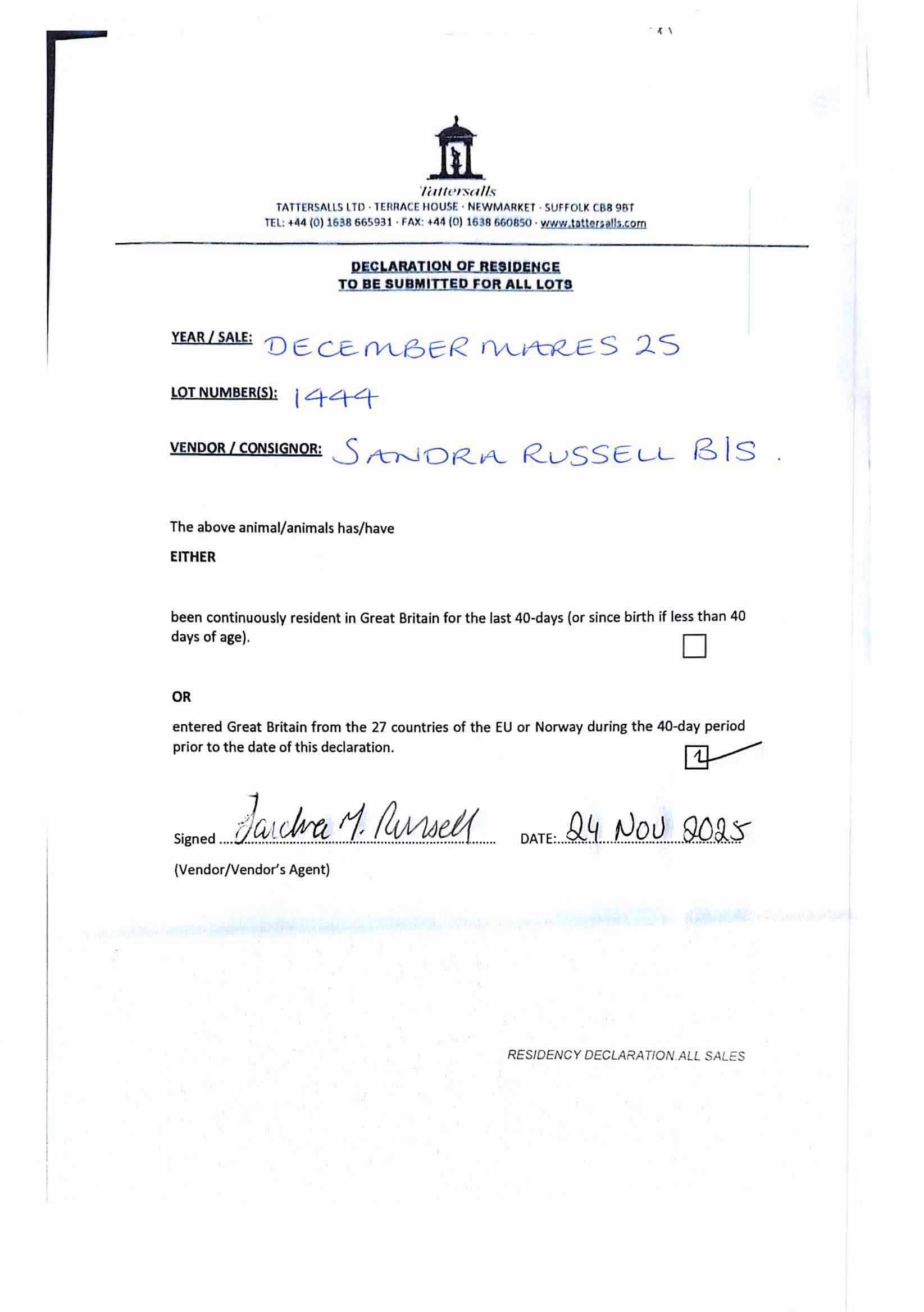 Consignor: Sandra Russell Bloodstock, Ireland
