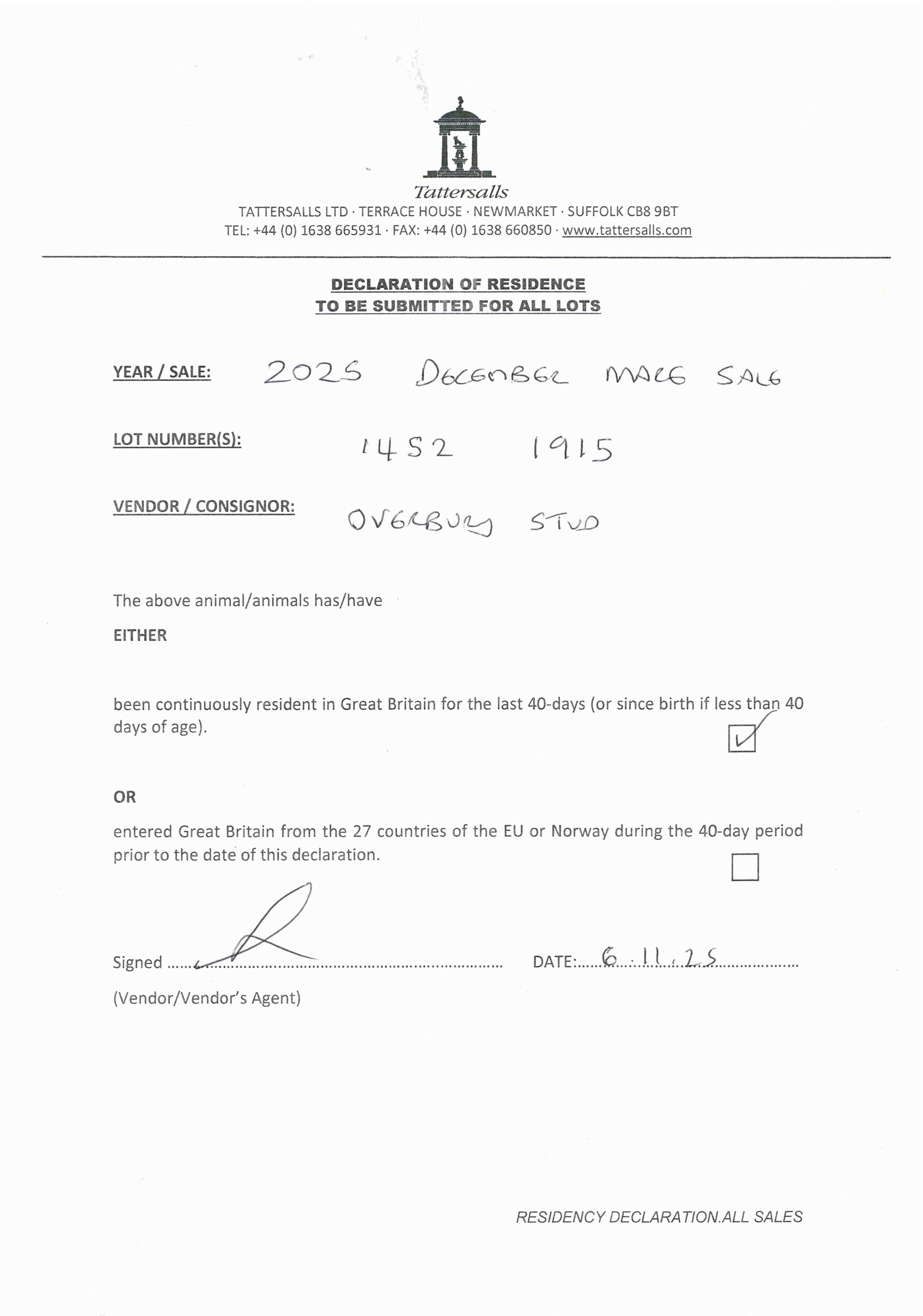 Half brother: CALANDAGAN (IRE) (g. by Gleneagles (IRE)), won 8 races at 2 to 4 years, 2025 at home, in France and in Japan and £3,699,612 including Champion Stakes, Ascot, Gr.1 and Japan Cup, Tokyo, Gr.1.