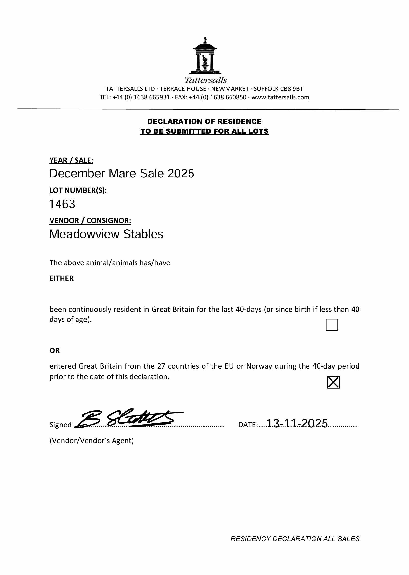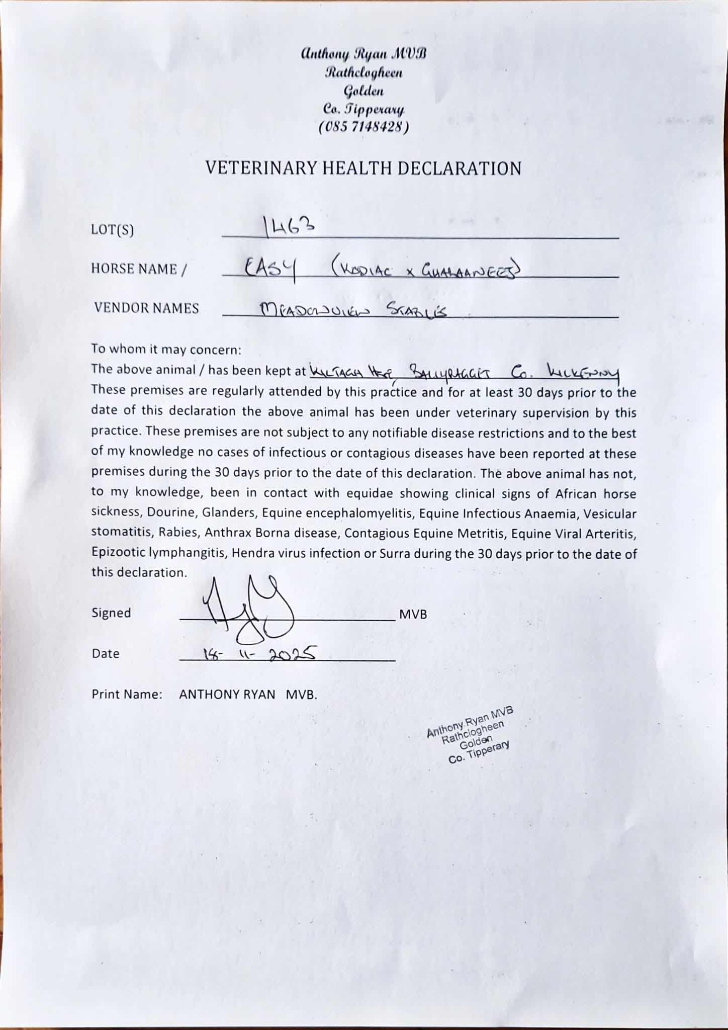 Consignor: Meadowview Stables, Ireland