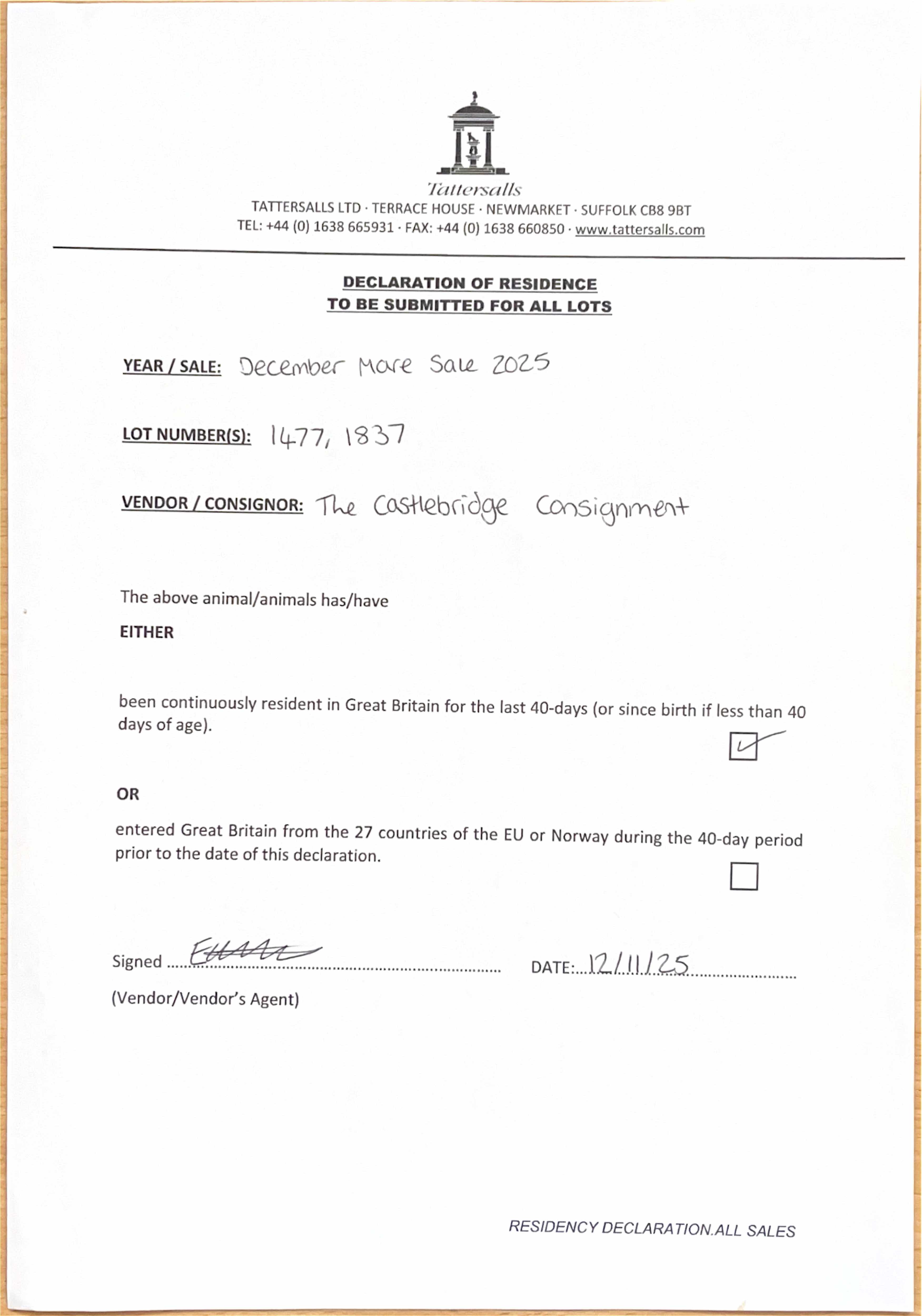 Consignor: The Castlebridge Consignment