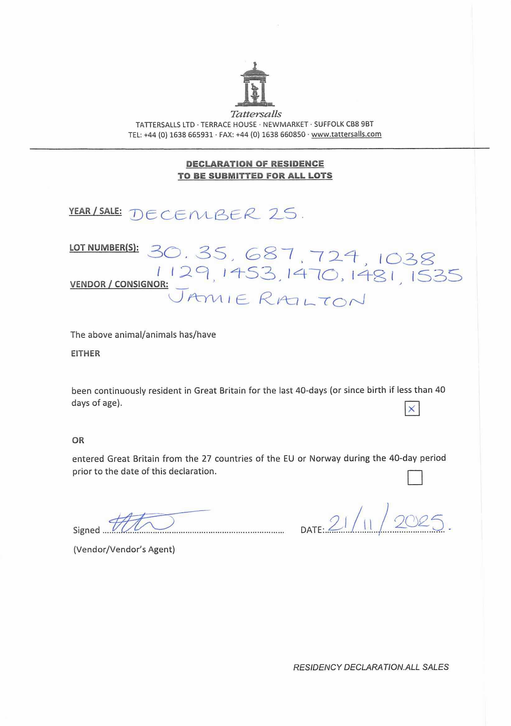 Consignor: Jamie Railton (Agent)