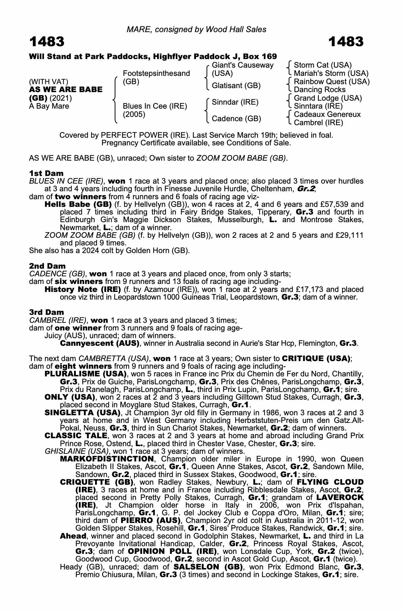 Online Sale - 15th January 2025 lot 83 Hells Babe (GB) (M. by Hellvelyn (GB)), Alne Park Stud=>Killartery Stud 1,000 gns