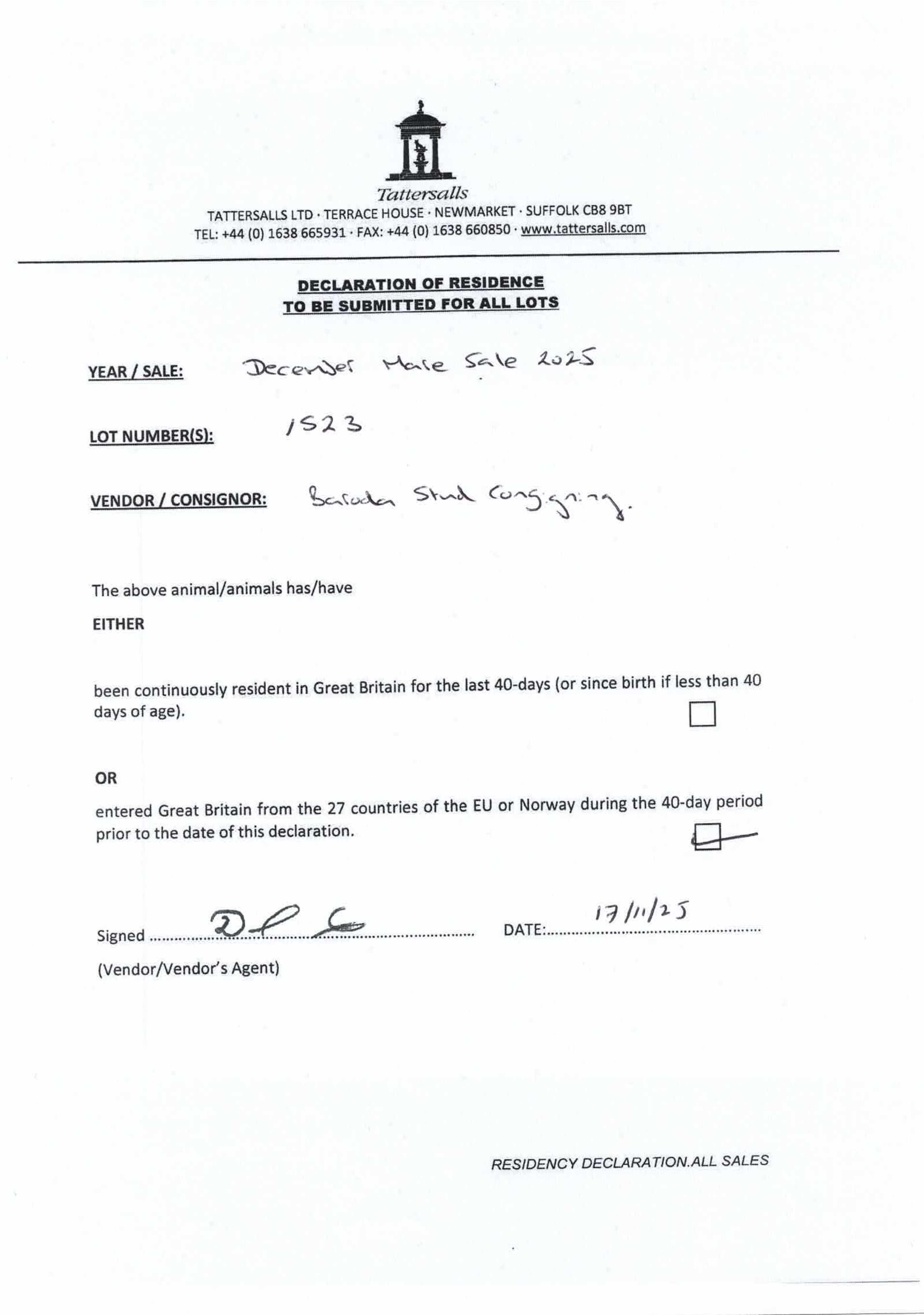 Consignor: Baroda Stud, Ireland