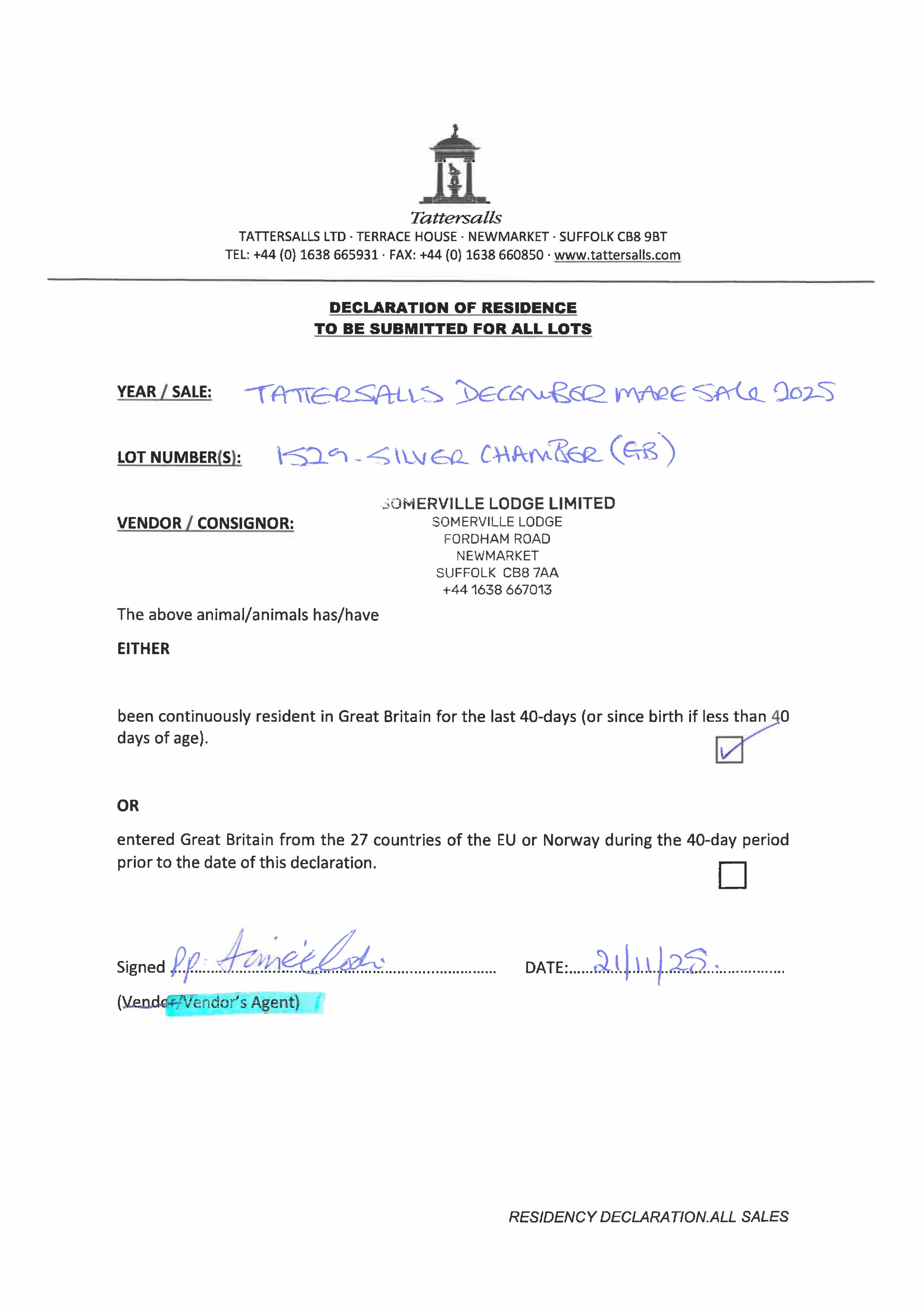Consignor: Somerville Lodge Ltd. (W. Haggas), Agent