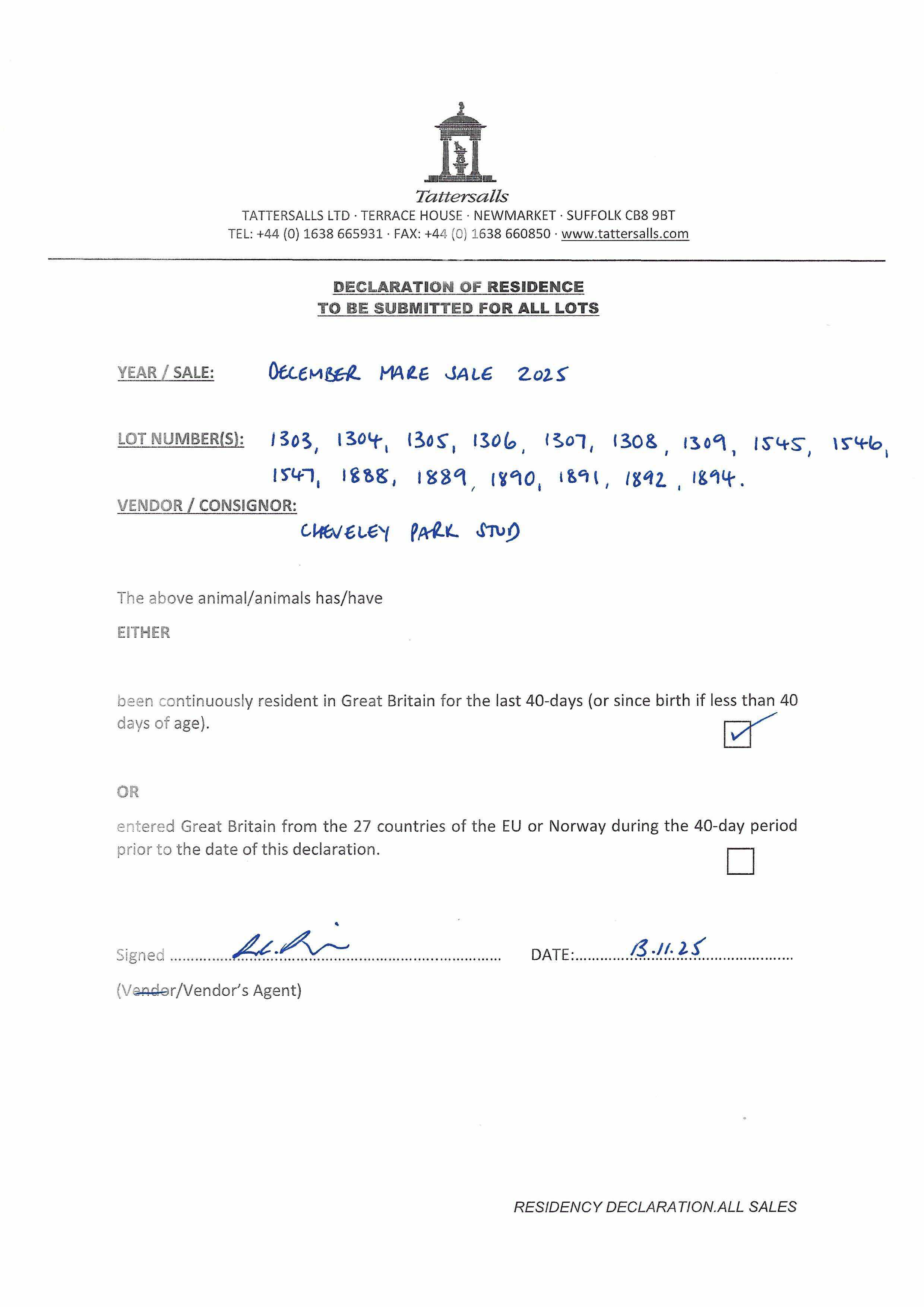 Consignor: Cheveley Park Stud Ltd.