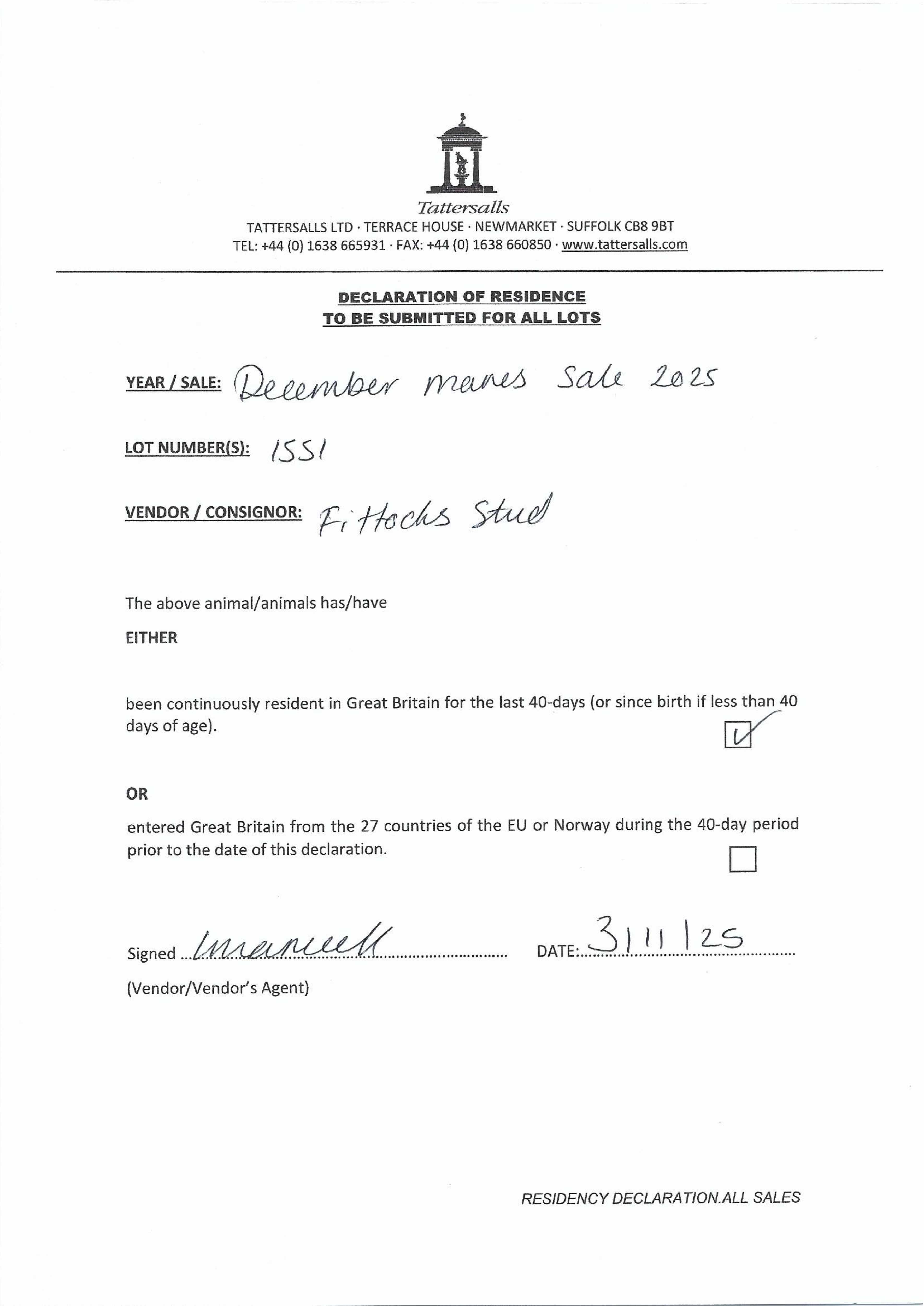 Consignor: Fittocks Stud