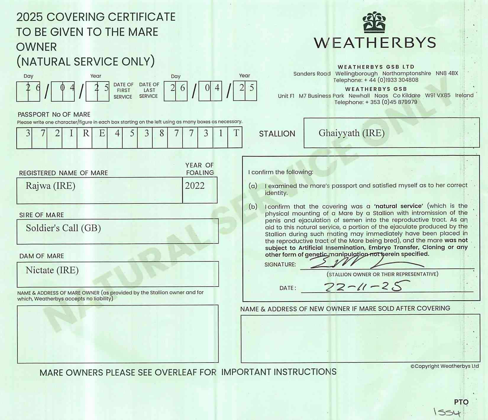 Consignor: Manister House Stud, Ireland