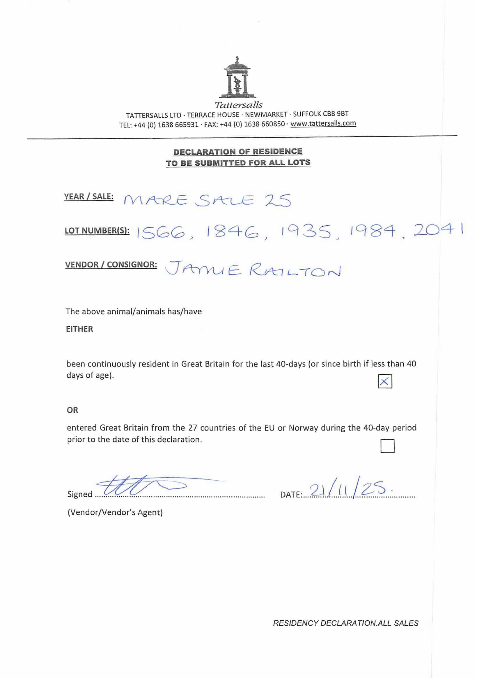 Consignor: Jamie Railton (Agent)