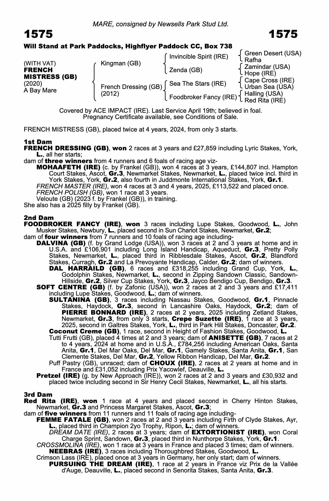 Under 2nd dam, SOFT CENTRE (GB), dam of SULTANINA (GB): ; dam of PIERRE BONNARD (IRE), 3 races at 2 years, 2025 at home and in France and £164,358 including Critérium de Saint-Cloud, Saint-Cloud, Gr.1, from only 4 starts.