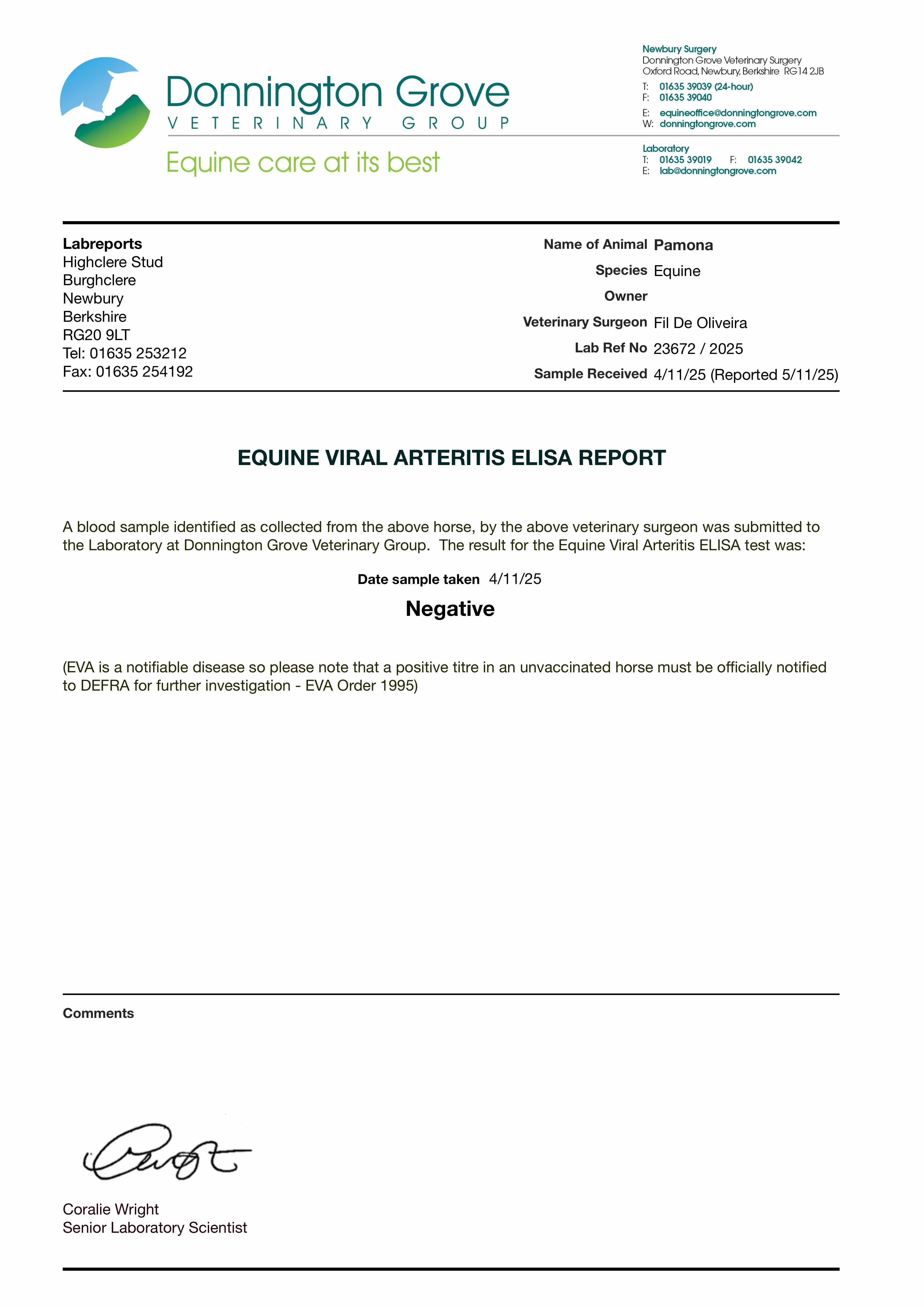 Contact: Jake Warren ✆ 01635 253212 ✉ info@highclerestud.co.uk