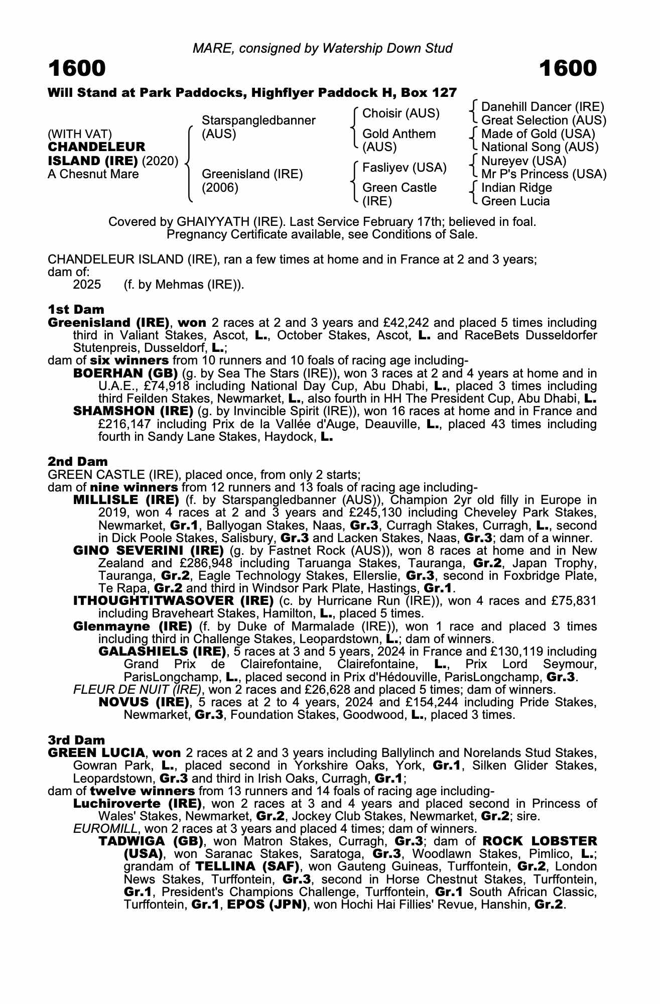 Consignor: Watership Down Stud
