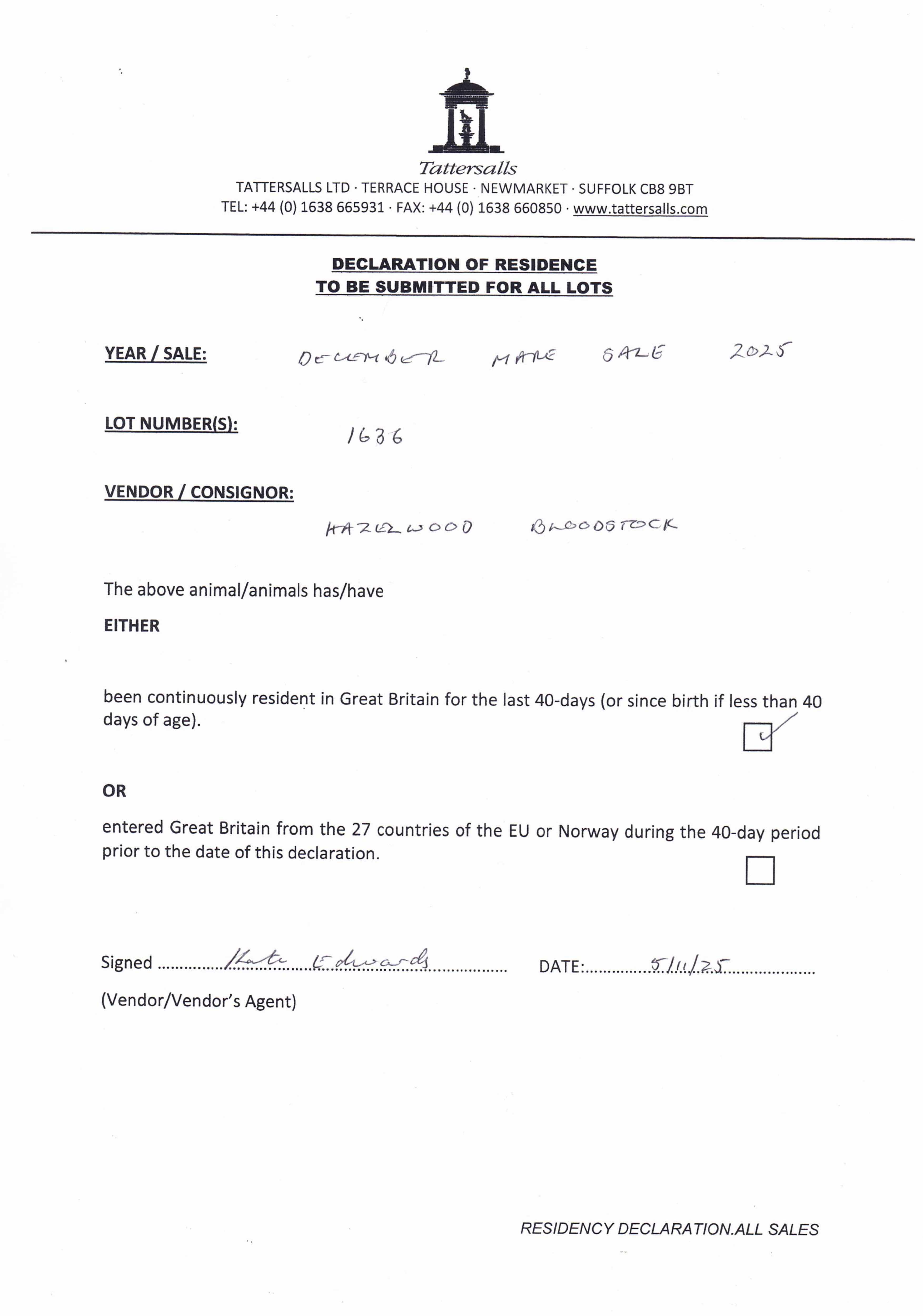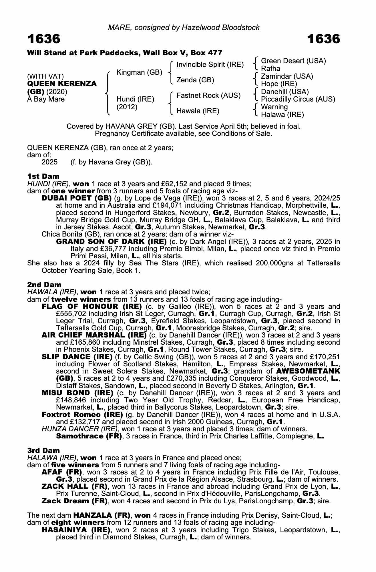 December Foal Sale 2025 lot 586 F. by Havana Grey (GB) 2025, Hazelwood Bloodstock=>Yeomanstown Stud 105,000 gns