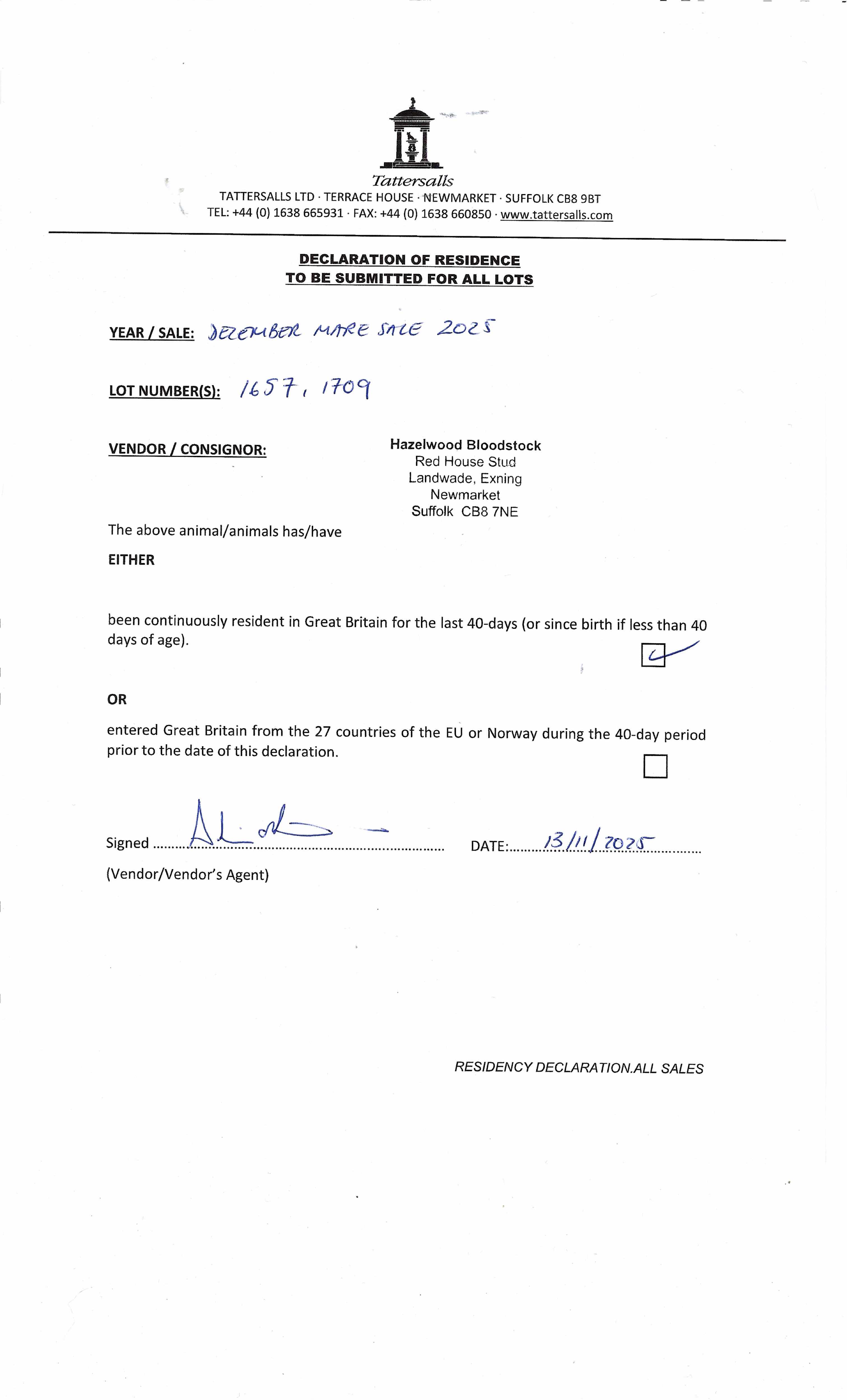 Contact: Adrian O'Brien ✆ 07468456488 ✉ adrian@hazelwoodbloodstock.co.uk