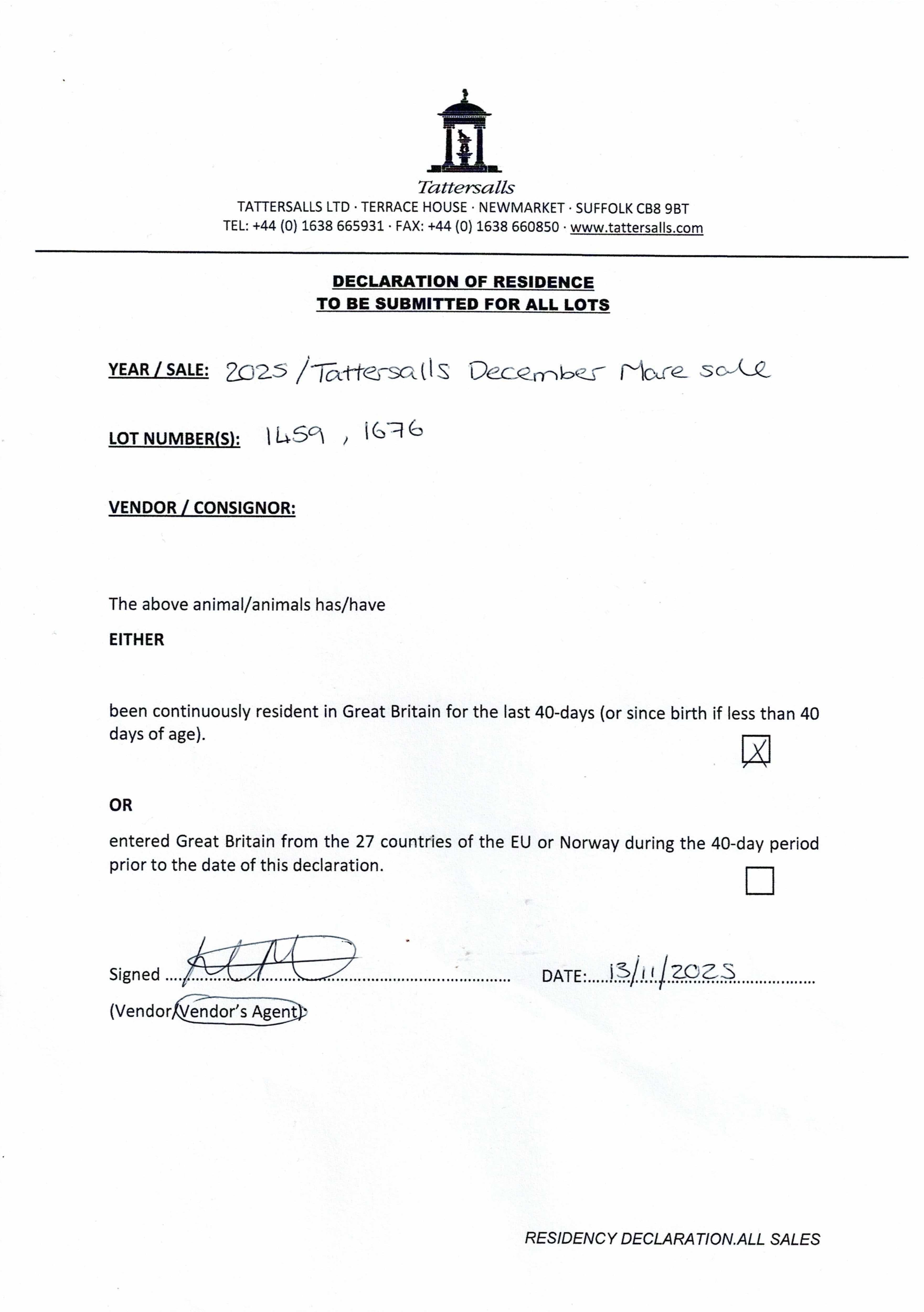 December Mare Sale 2025 lot 1186 Glory And Gold (GB) (M. by Havana Gold (IRE)), The National Stud Ltd.=>High Farm 32,000 gns