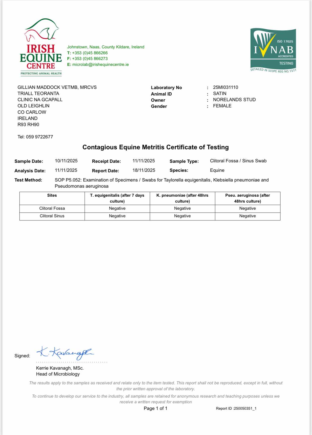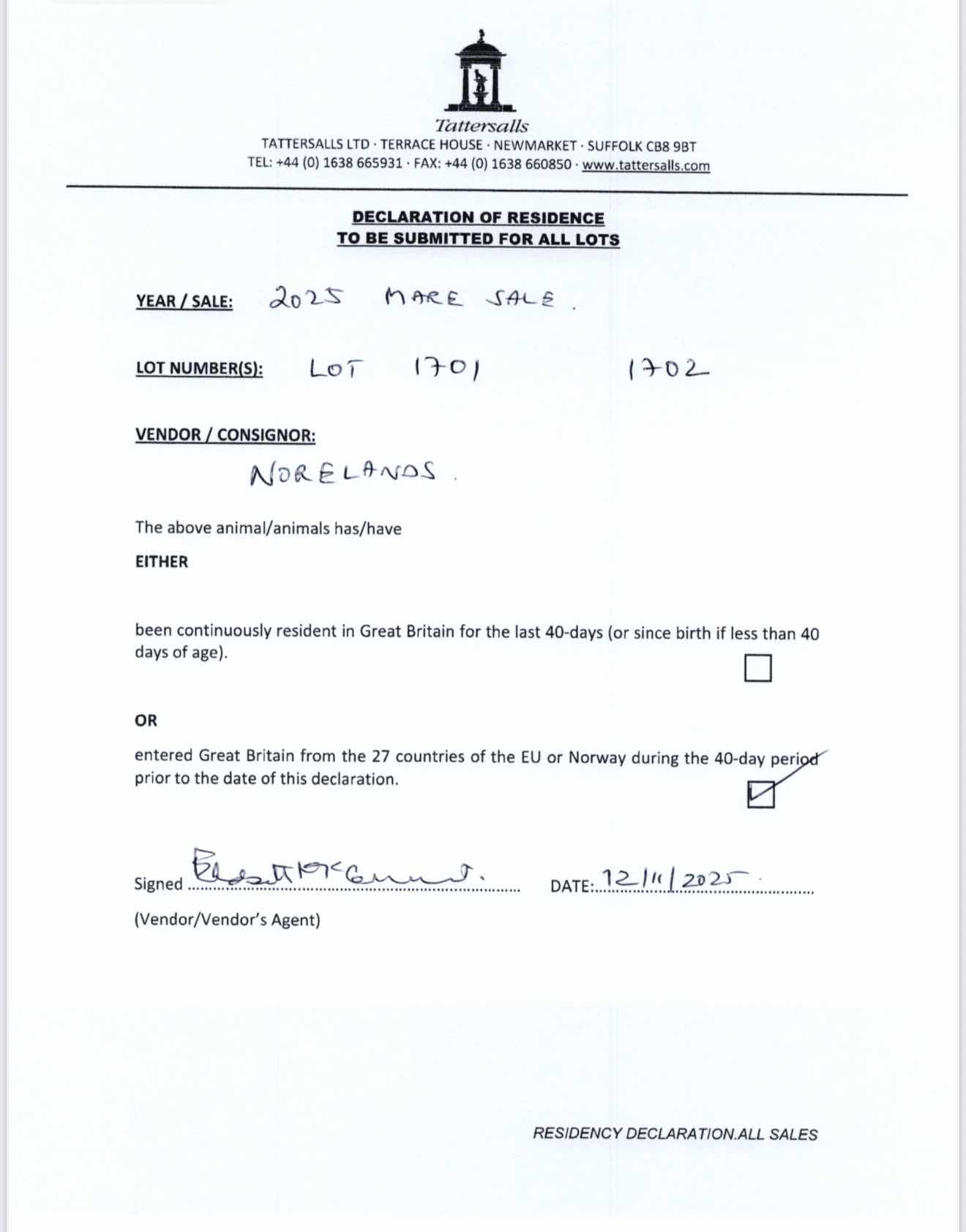 Consignor: Norelands, Ireland