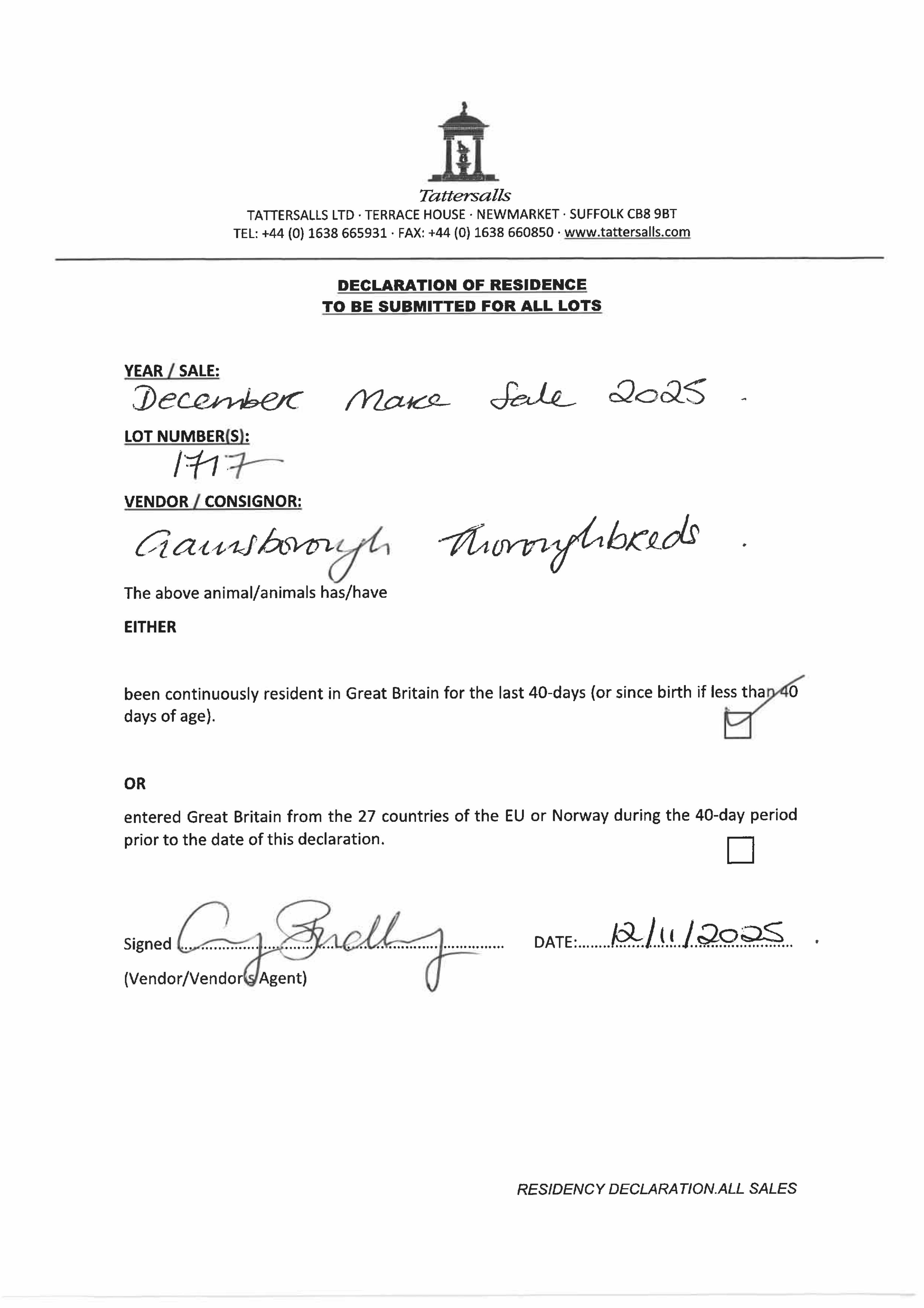 Consignor: Gainsborough Thoroughbreds (S. & E. Crisford)