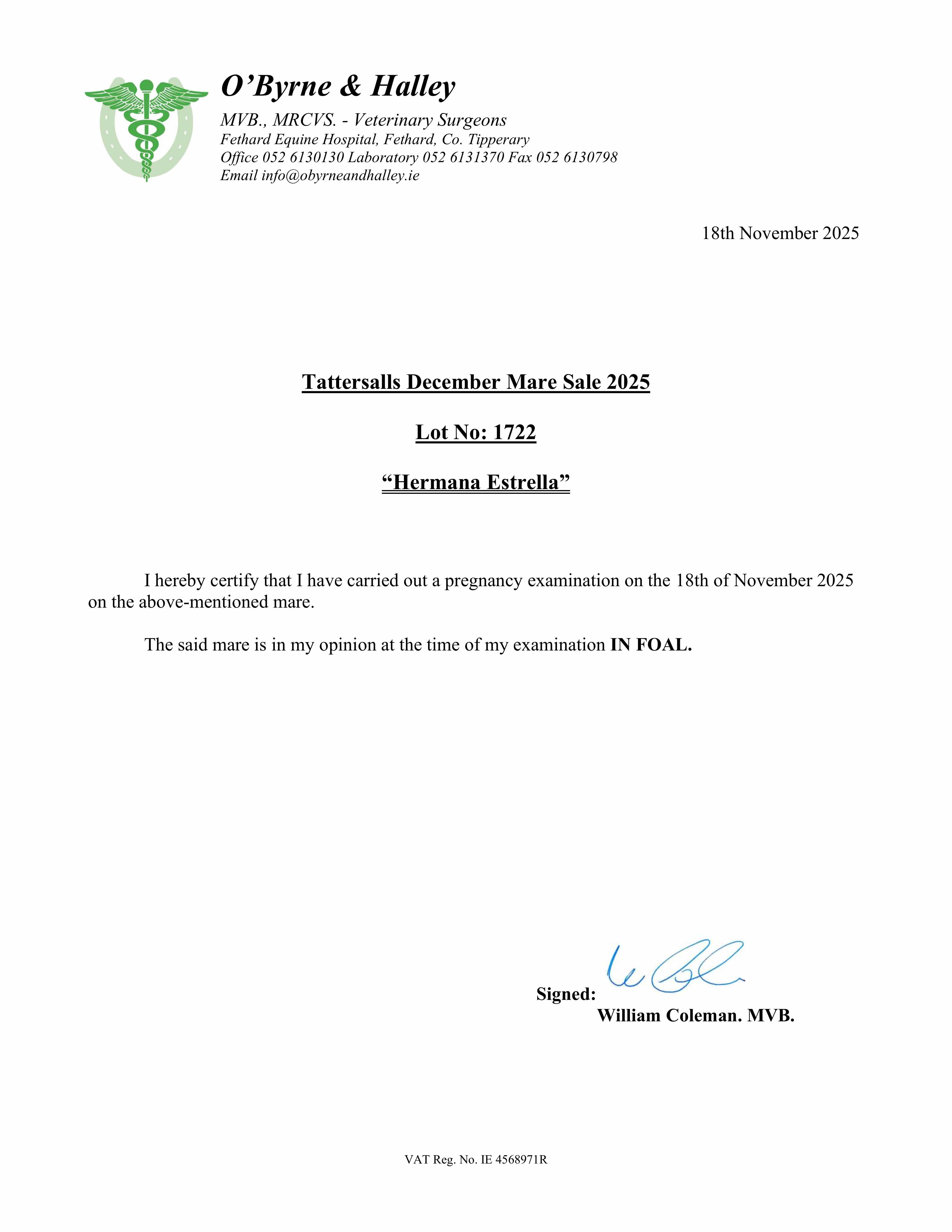 Consignor: Glenvale Stud, Ireland